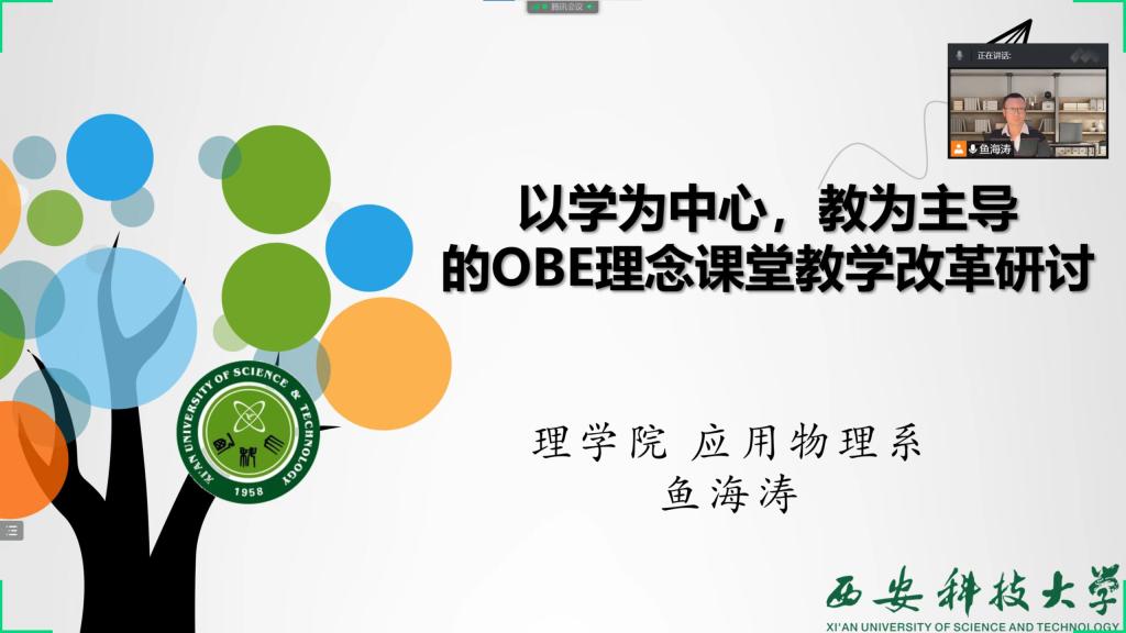 活动由系主任朱华泽主持。活动就课堂教学改革、线上线下教学、献礼教师节、疫情防控等工作进行研讨和部署。2022年公司师德先进个人----鱼海涛老师做“以学为中心,教为主导的OBE理念课堂教学改革研讨”专题报告,他从背景与学情、理念与目标、过程与方法、评价与反馈、成效与推广等几个方面详细介绍了他在教学改革方面所取得的一些成果,为所有老师如何实施课堂教学改革提供了很好的思路。