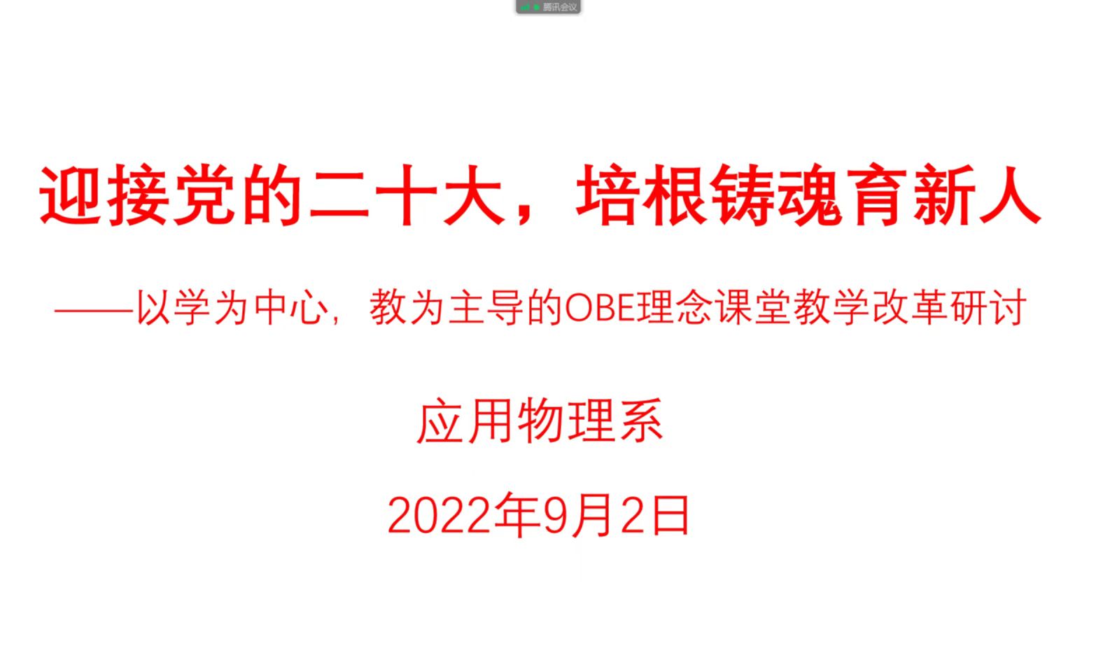 2022年9月2日下午,谈球吧物理系利用腾讯会议平台开展“迎接党的二十大,培根铸魂育新人”专题活动。物理系党支部书记、系主任及全体教师参加活动。