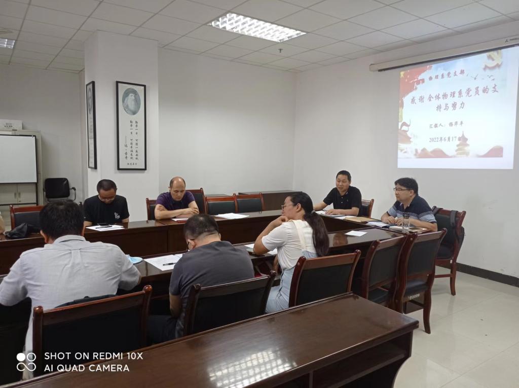 以深入学习贯彻习近平新时代中国特色社会主义思想,学习贯彻党的十九届六中全会精神为主题,巩固党史学习教育成果,谈球吧物理系党支部于6月17日在雁塔校区煤科大楼召开2021年度组织生活会,开展民主评议党员。支部全体党员参加了会议,会议由支部书记杨华平主持,谈球吧经理张仲华到会指导。