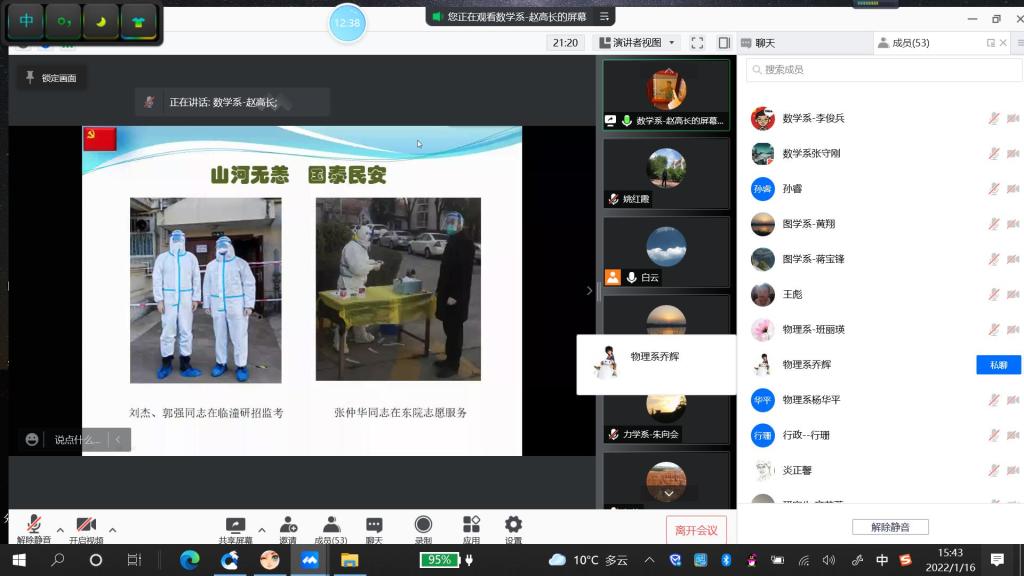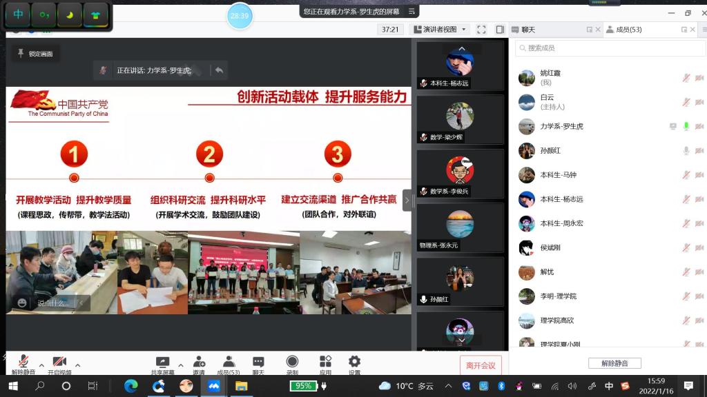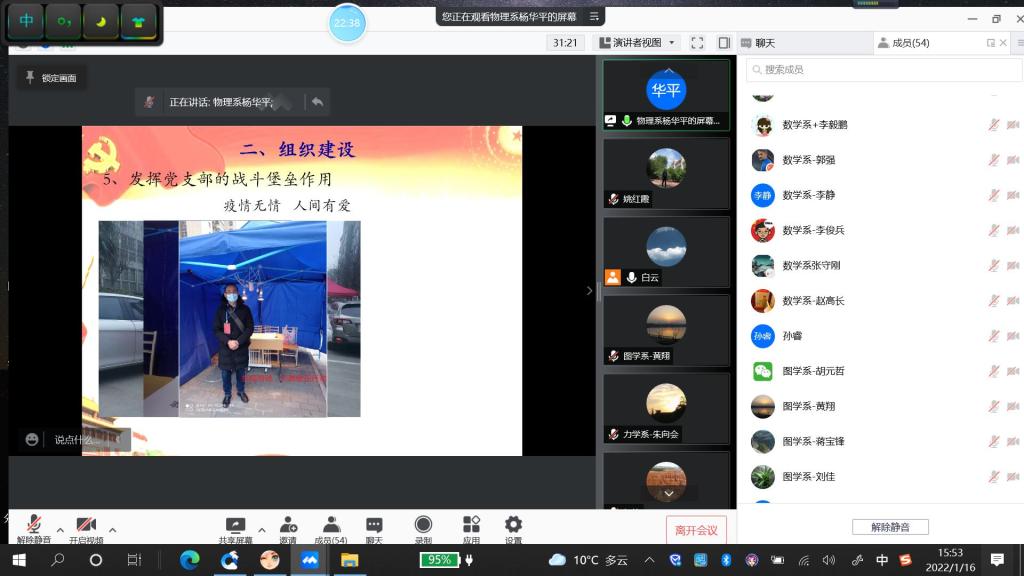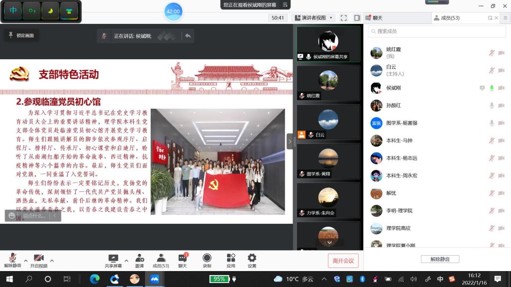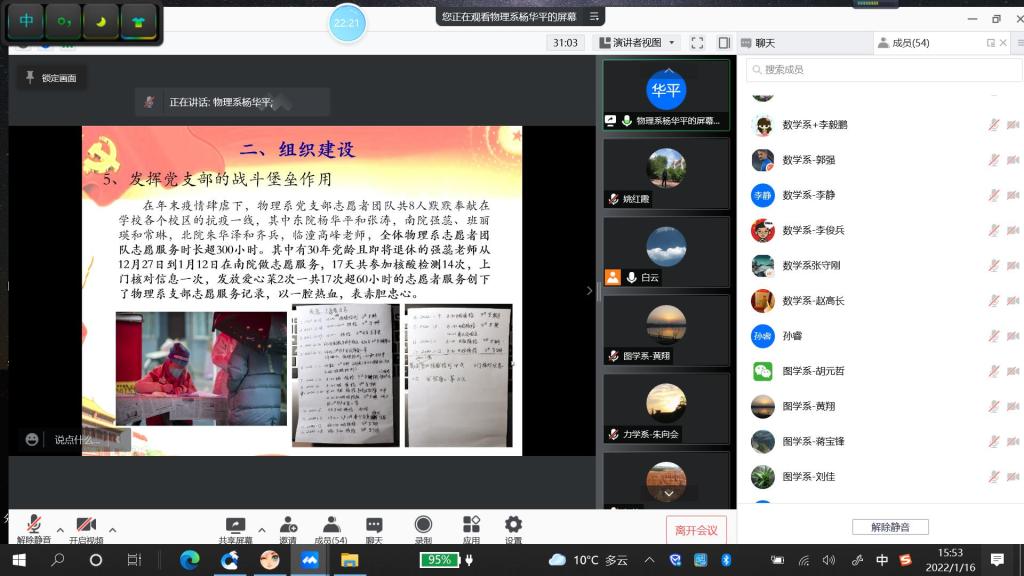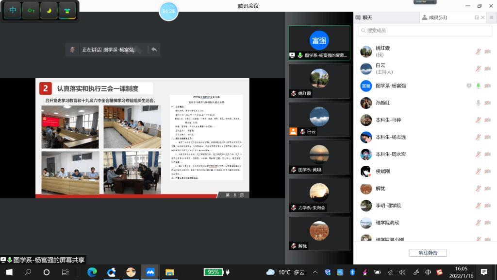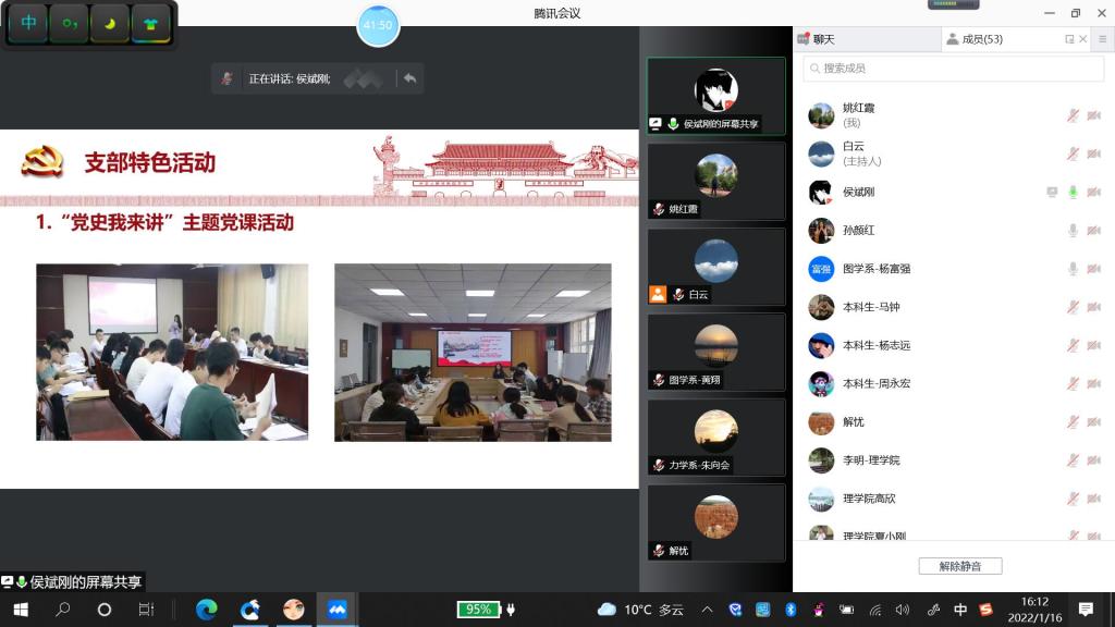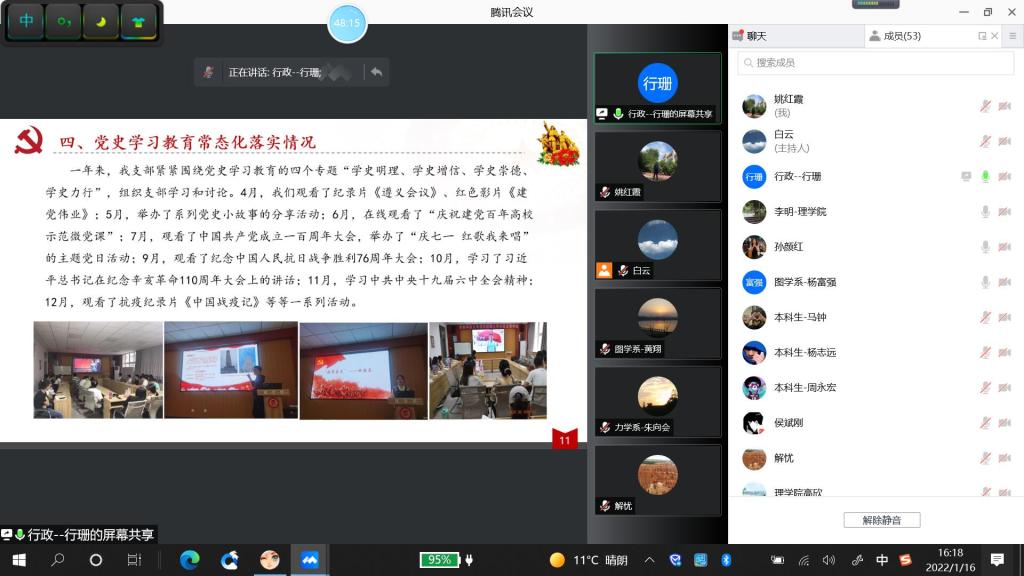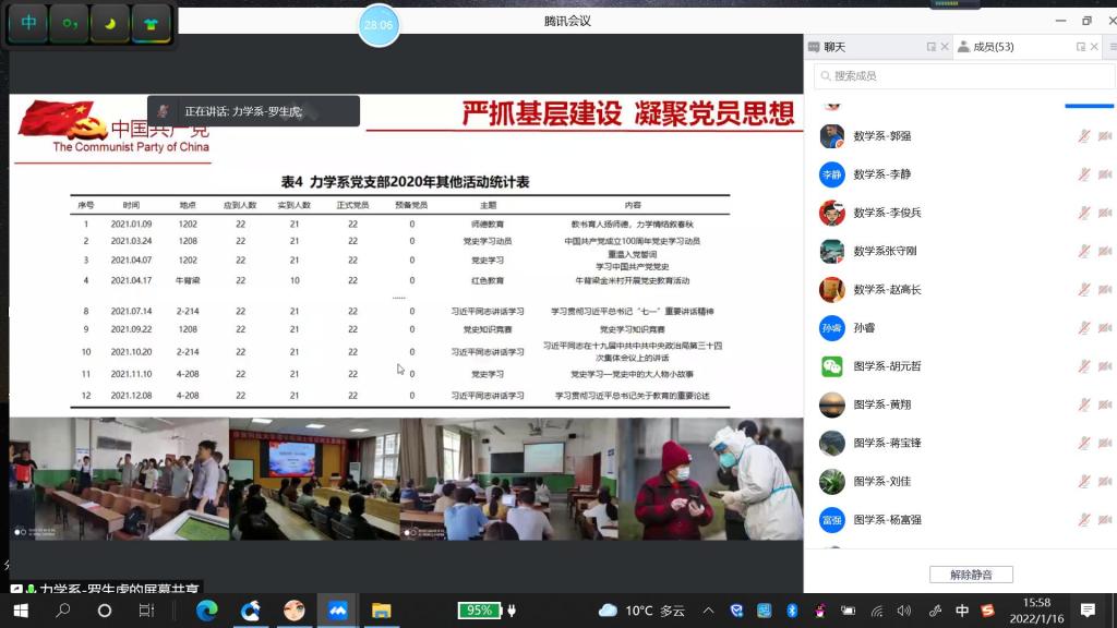 2022年1月16日下午,谈球吧以腾讯会议平台召开了2021年度党支部书记抓党建述职评议考核会议。谈球吧全体班子成员、党委委员、党支部书记及支委、系主任及党内外代表共53人参加会议。