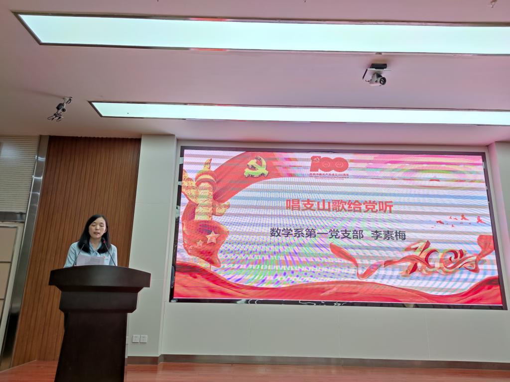 经各党支部选拔,推荐李素梅、李毅鹏、寇海波、李绍蓉、蒋宝峰五位同志在大会上作“我心向党庆百年、奋发图强逐梦行”主题演讲汇报。他们紧扣党史学习教育,有的讲述家乡党史故事“强渡大渡河,巧克天险一往无前”,有的结合学习讲“学党史、铸新魂”“学史明志、知古鉴今”个人心得和感悟,有的以“唱支山歌给党听”“学党史、颂党恩”来表达对党的感恩、热爱之情。5位老师的精彩演讲引发大会阵阵掌声。