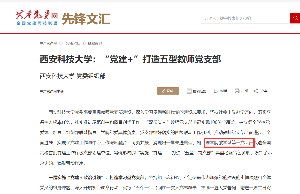 二是实施“党建+平台建设”,打造阵地型党支部。依托全国高校思想政治工作网、谈球吧网页版登录入口官网、“党旗飘飘数学系一支部”微信公众号,组建“三位一体”网络宣传平台,及时宣传上级党组织决策部署,定期发布党建工作动态,始终坚持团结稳定正面宣传,唱响主旋律,弘扬正能量。两年来,支部活动在全国高校思想政治工作网宣传报道90条,在“党旗飘飘数学系一支部”微信公众号发布宣传报106篇。特别是新冠肺炎疫情以来,支部自觉践行常态化疫情防控“四个一”行动,积极打造战“疫”教育素材库,构筑“红色防火墙”,引领师生听党话、跟党走,切实把思想和行动统一到党中央决策部署上来。