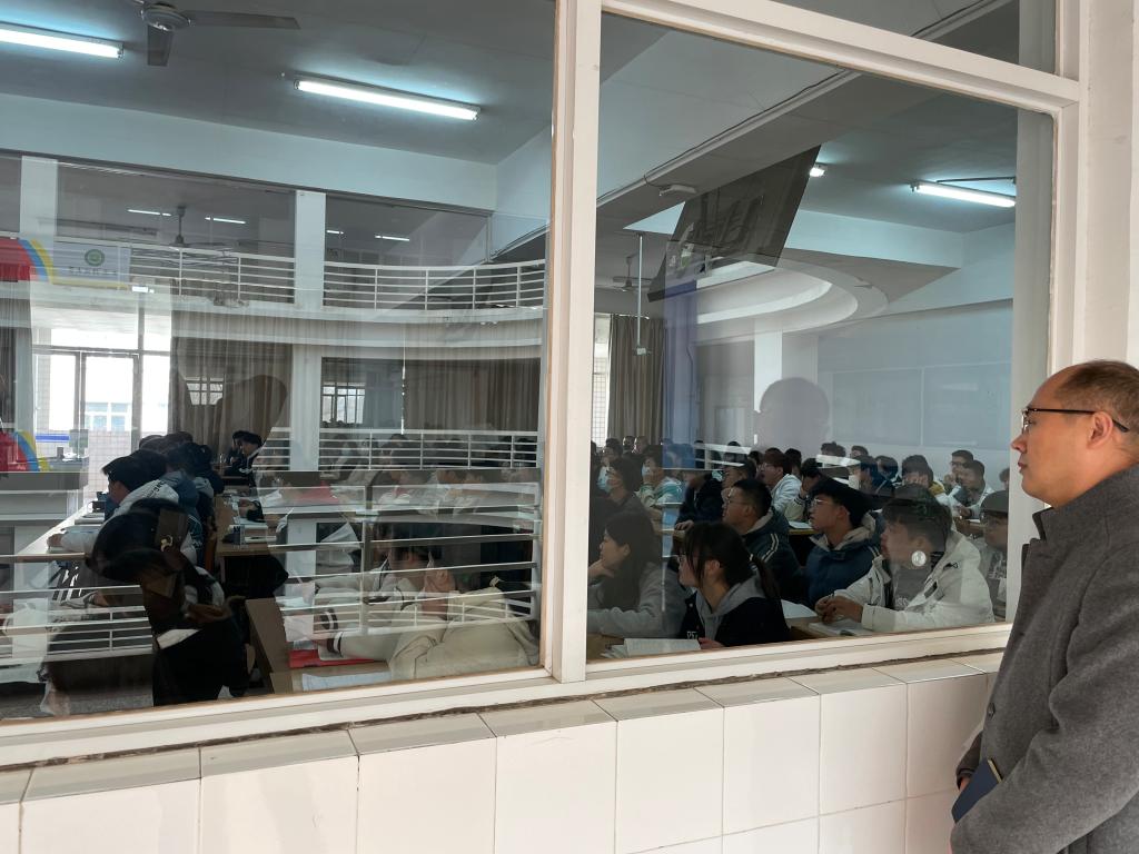 2月27日,2023年春季学期开学第一天,副经理解忧带领公司教务办深入教学一线,开展新学期教学检查。对公司师生到位情况、教师教学准备等开展检查。从检查情况来看,各位老师高度重视教学工作,为新学期开学做了大量准备工作。任课教师教学准备充分,员工听课认真,教学秩序井然。