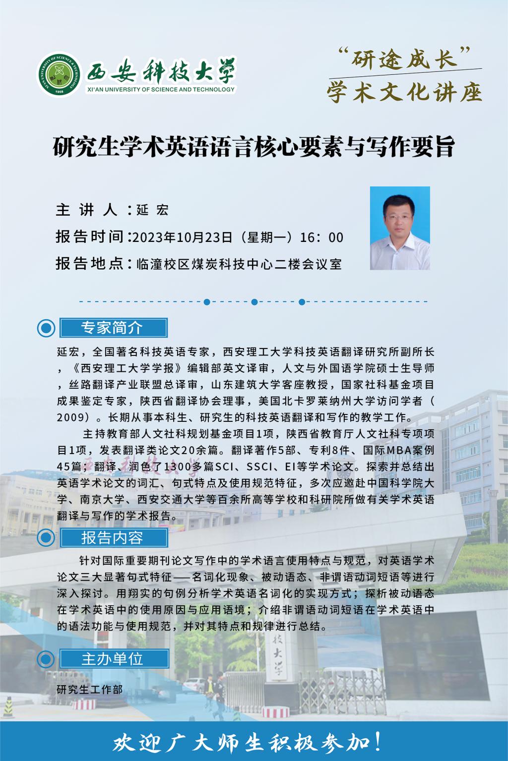 “研途成长”研究生学术文化讲座通知