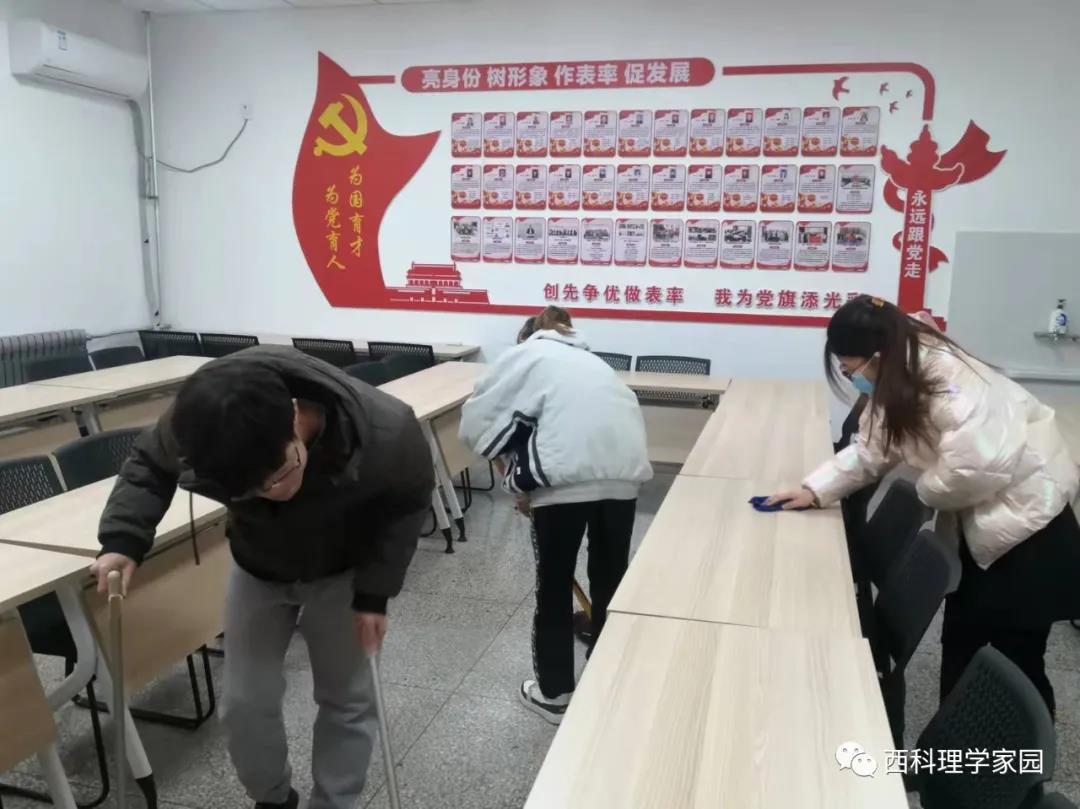 为发扬爱校荣校精神、培养员工崇尚劳动、热爱劳动、尊重劳动的精神,谈球吧于11月8日组织开展“与冬相拥,爱我西科”主题劳动教育活动,分批组织员工党员、青年志愿者、国家助学金受助员工对公司党建工作站、实验室及连廊自习室进行清洁打扫。
