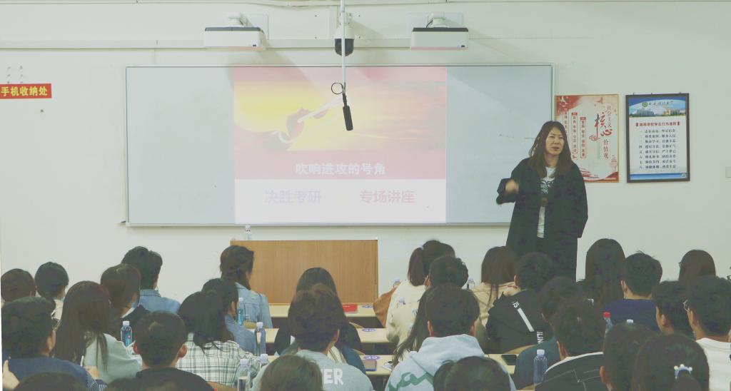 4月12日晚,谈球吧在临潼校区骊山校园举办考研规划专场讲座,主讲人是知名考研全程规划师、高级巡讲师王宁老师,谈球吧大一大二全体员工聆听了讲座。