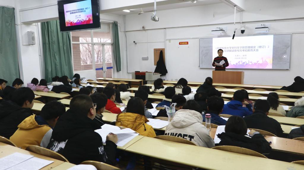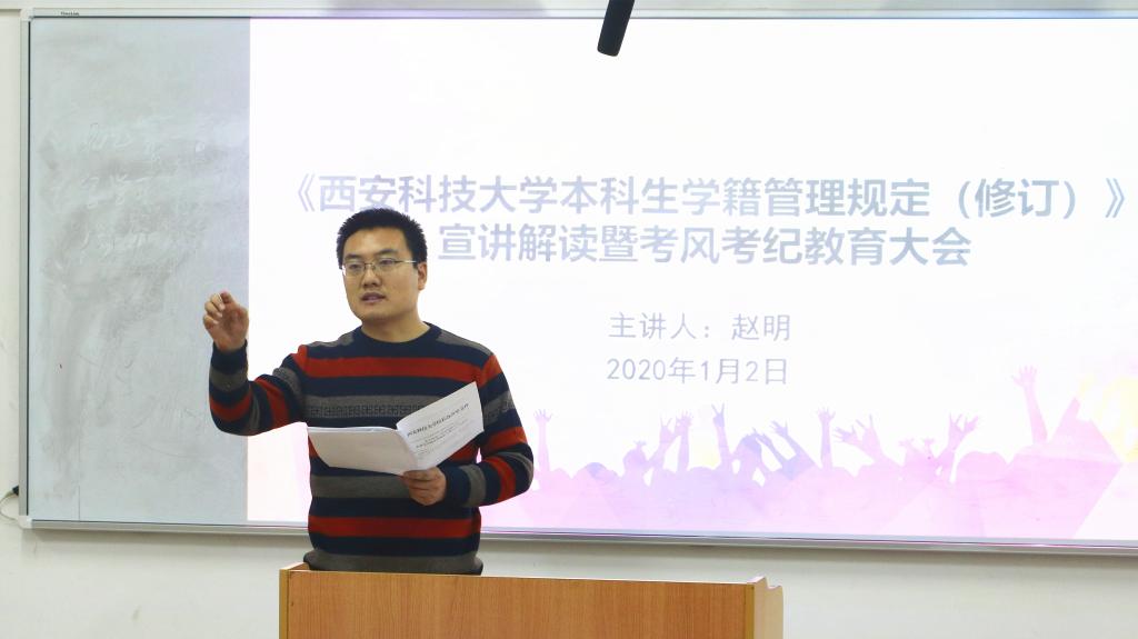 1月2日下午,谈球吧召开本科生学籍学位新规宣讲解读暨考风考纪教育大会,谈球吧学工办主任赵明主讲,2019级全体员工参加会议。
