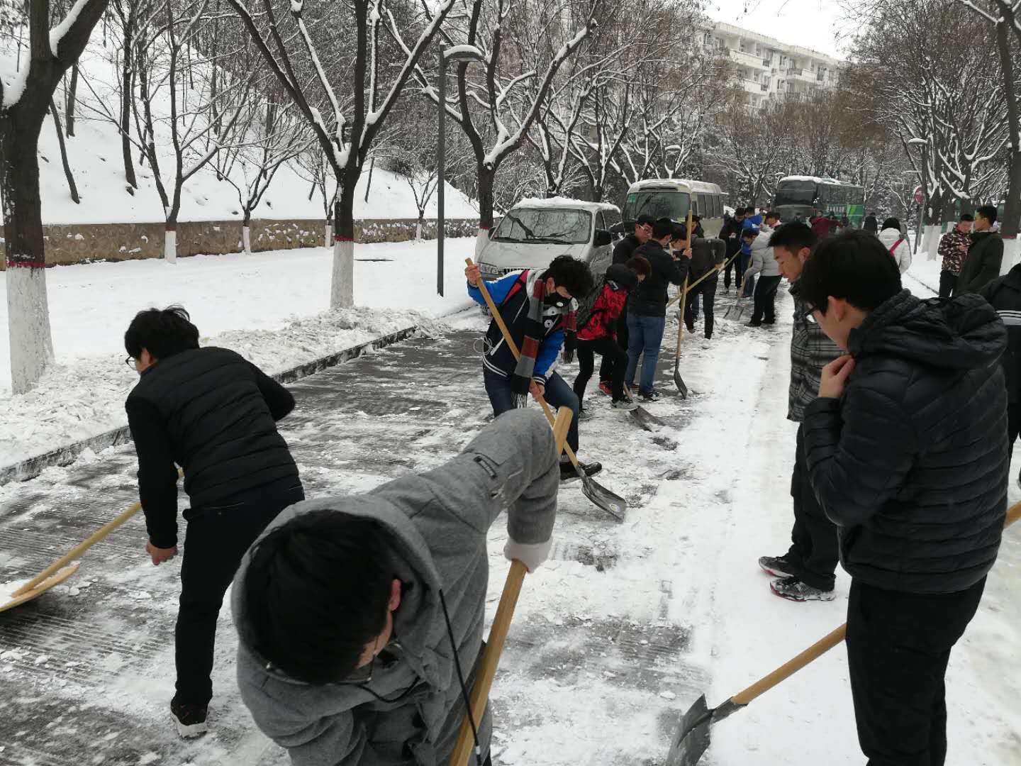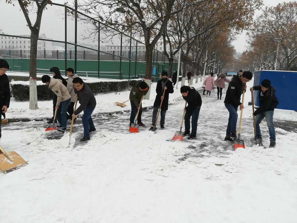 近日,大雪使得校园积雪严重,为保障师生们的出行安全,谈球吧及时组织了清理校园道路积雪的活动。在党委副书记贾哲和分团委书记赵明的带领下,公司各年级同学不畏严寒,互相配合,对公司东环道、体育场东侧干道等多个校园区域的积雪进行了清理,确保了道路的畅通和教生的出行安全。