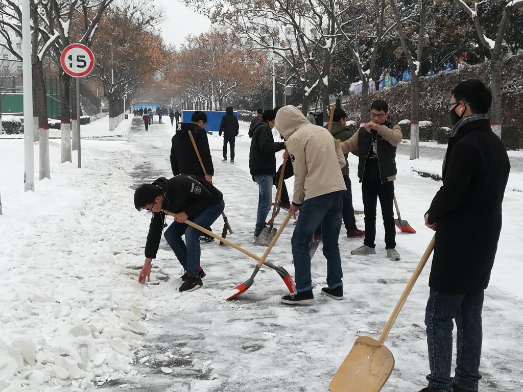 谈球吧组织清理校园积雪