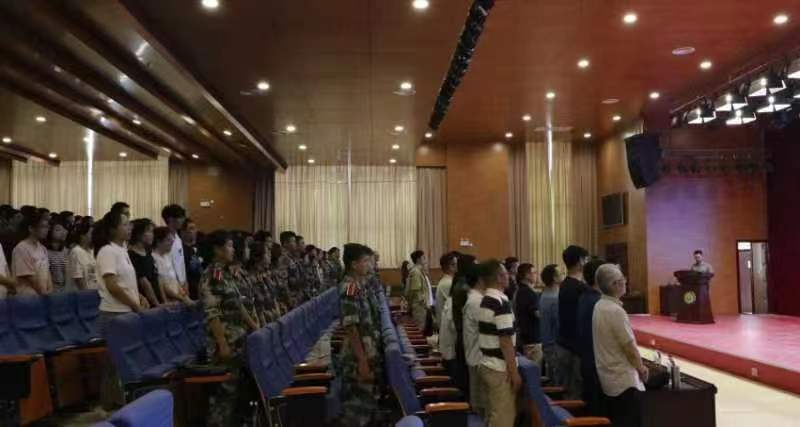 大会第一项进行升国旗仪式,全体起立,奏唱国歌。