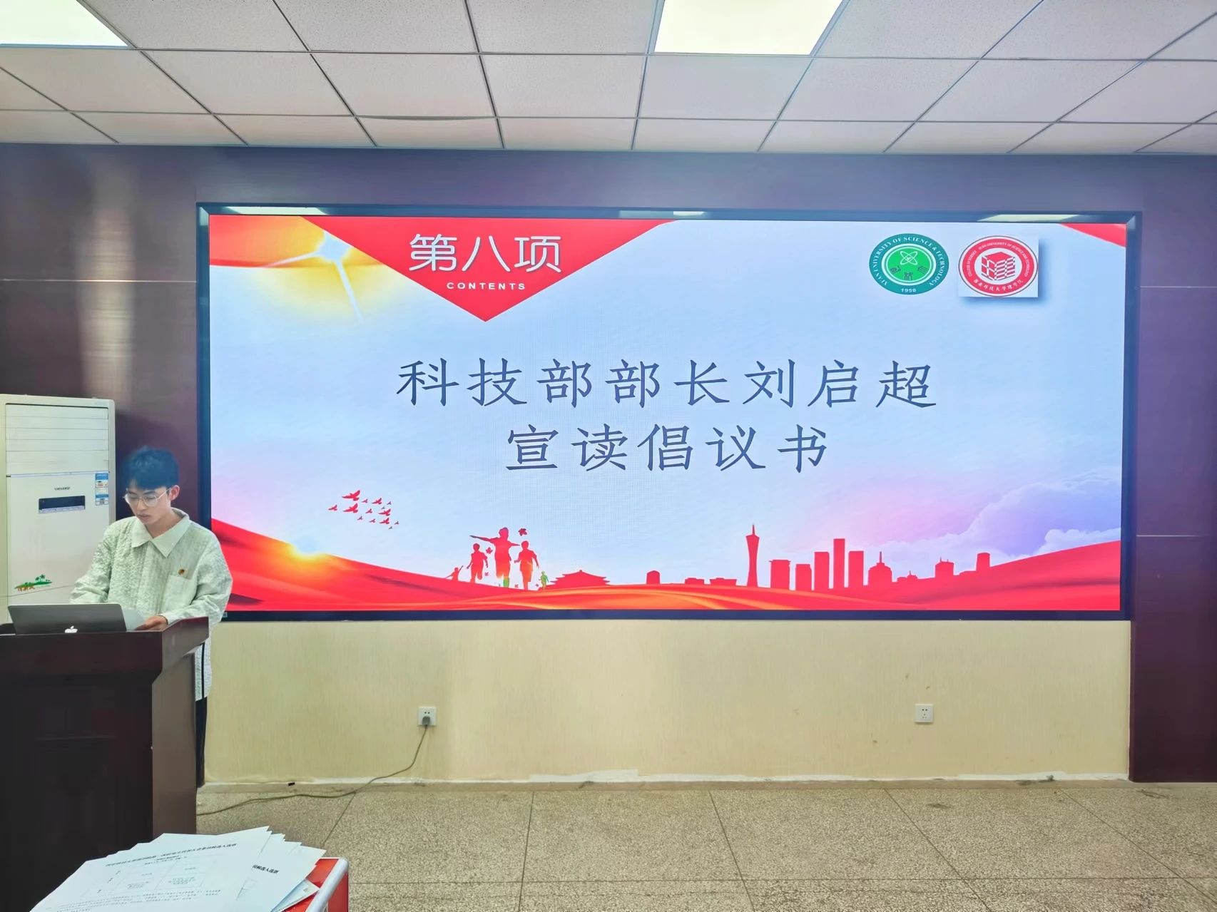 公司科技部部长刘启超宣读了题为《青春建功新时代 同心共筑中国梦》的倡议书。他鼓励同学们要坚定理想信念,筑牢青春之魂;勤奋学习,练就过硬本领;勇于创新,引领时代潮流;积极服务,奉献社会大众。只要我们团结一心,勇往直前,就一定能够创造出无愧于时代的青春业绩,书写出属于我们这一代人的辉煌篇章!