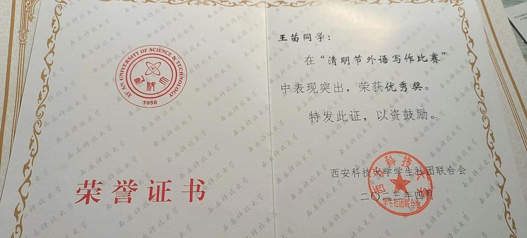 王苗,公司2022级数学与应用数学本科生,校合唱团成员,曾获数学建模校级三等奖,“清明节外语写作比赛”校级优秀奖,谈球吧网页版登录入口第一届“礼敬中华传统文化”优秀奖。