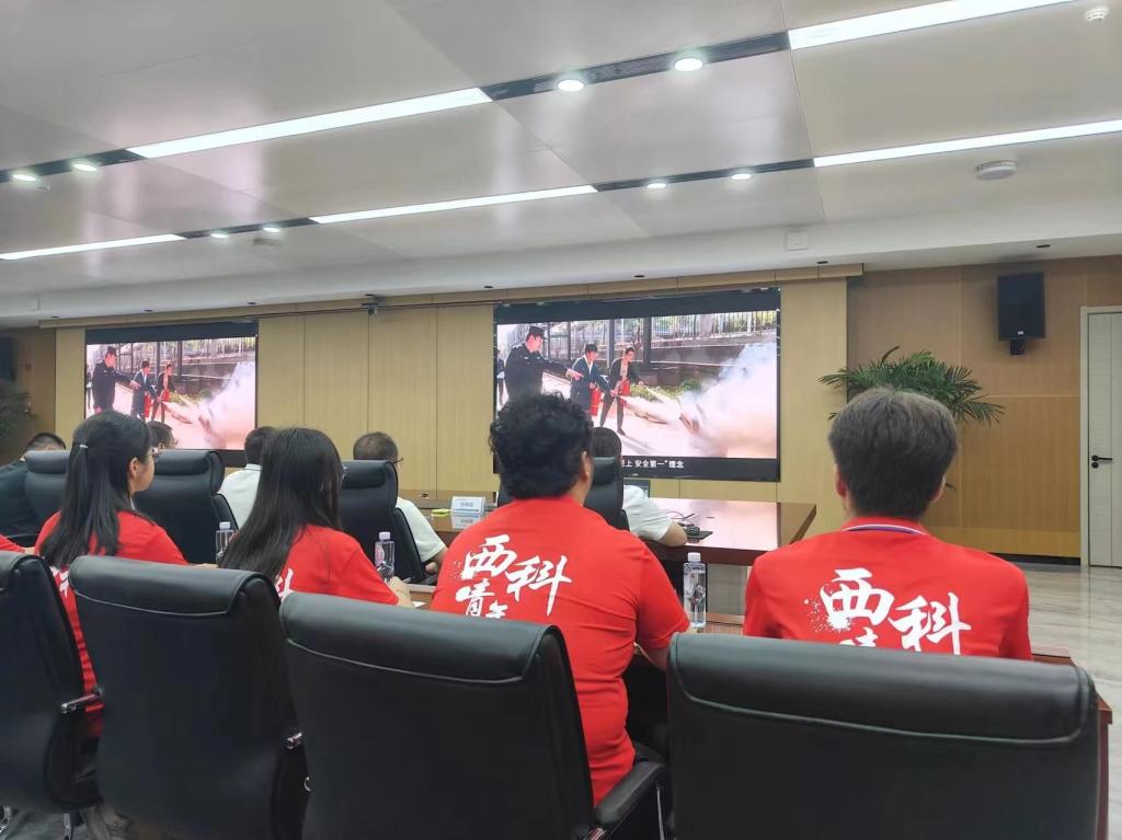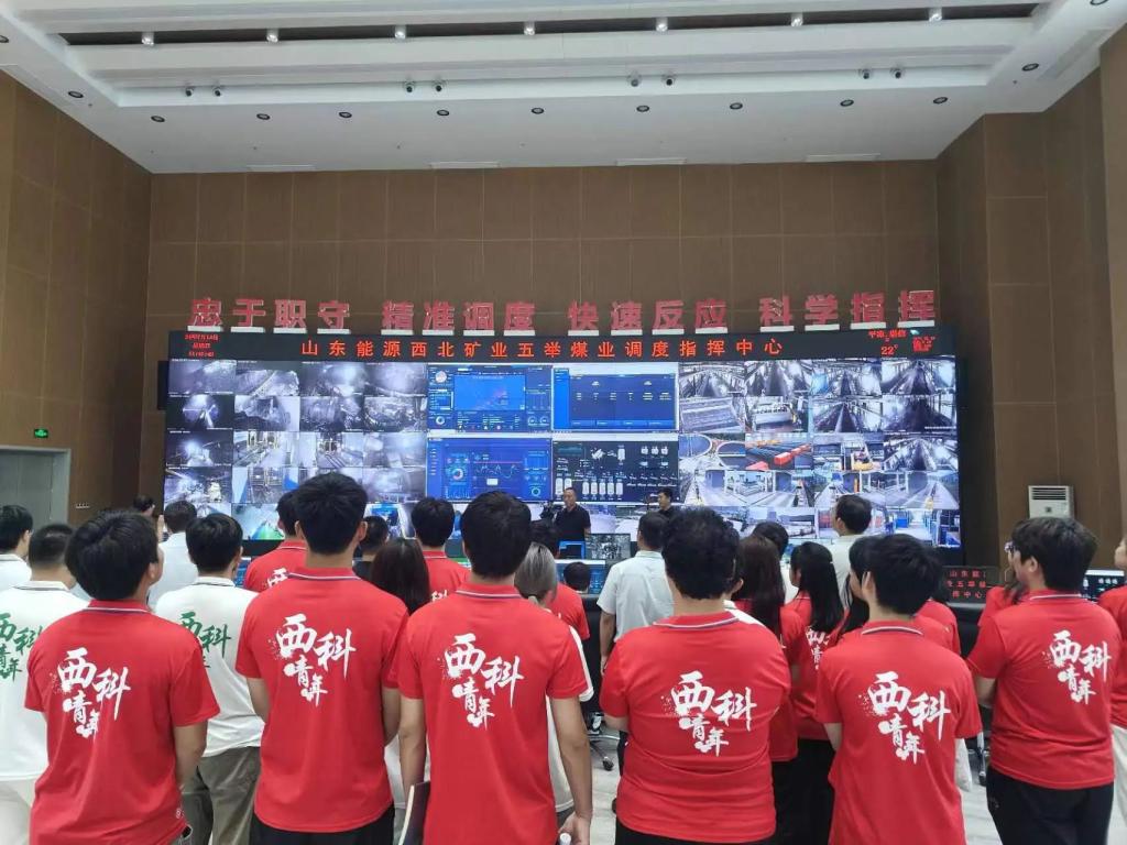 第二站,实践团师生来到了五举煤业公司办公楼。共同观看了企业宣传片,五举煤业公司以生动的画面和详实的数据,展现了其在煤炭开采技术革新、绿色矿山建设、安全生产管理等方面的卓越成就与不懈努力。师生们步入调度指挥中心,这里是整个矿区生产运营的“大脑”,通过高清大屏和先进的调度系统,工作人员展示了如何实时监控矿井生产状况、协调各个环节的生产任务,确保生产安全高效运行。