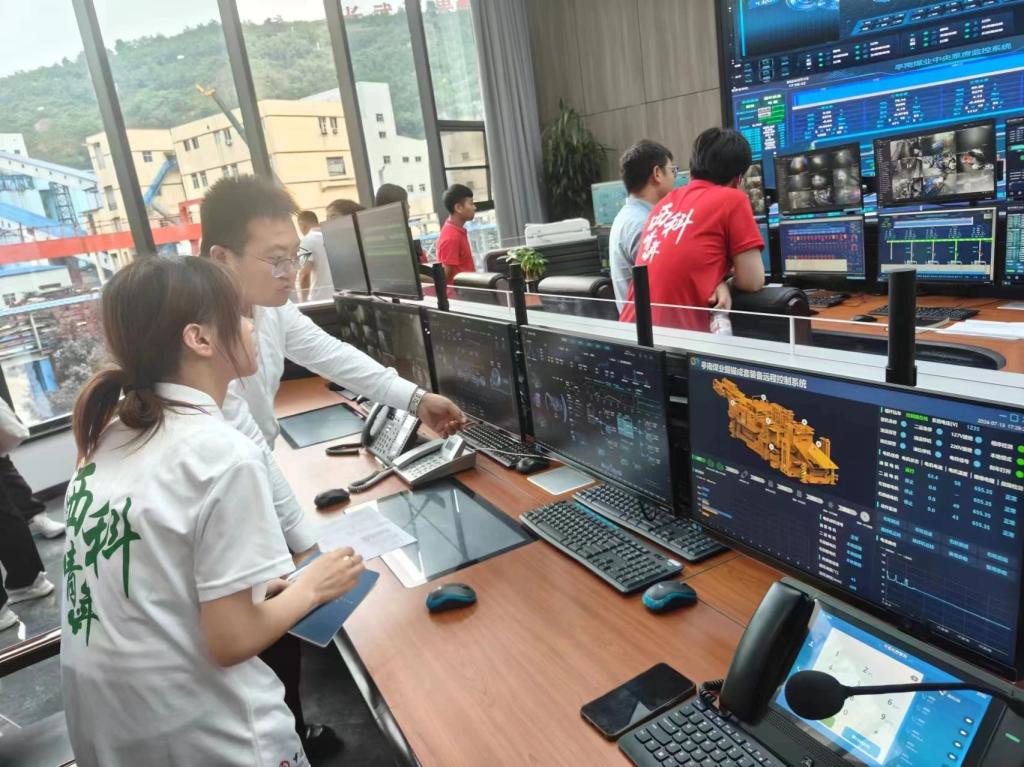 通过高清大屏,实践团成员亲眼目睹了井下生产现场的实时画面,以及各类生产数据的动态变化。工作人员详细介绍了平台如何通过大数据分析,优化生产流程、预测潜在风险、提高生产效率,并展示了智能调度系统如何根据实时数据自动调整生产计划,确保生产安全高效运行。