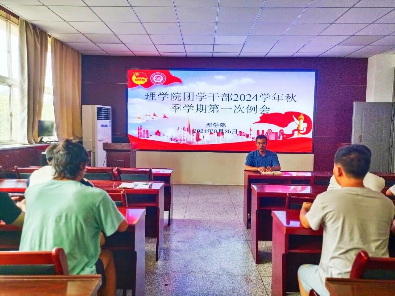 侯斌刚对过去一学期团学工作进行了简要回顾与总结,充分肯定了员工干部在各自岗位上的积极贡献和辛勤付出,强调了新学期团学工作的重要性,并重点对迎新工作做了安排,希望全体团学干部以饱满的热情和高度的责任感投入到接下来的工作中。