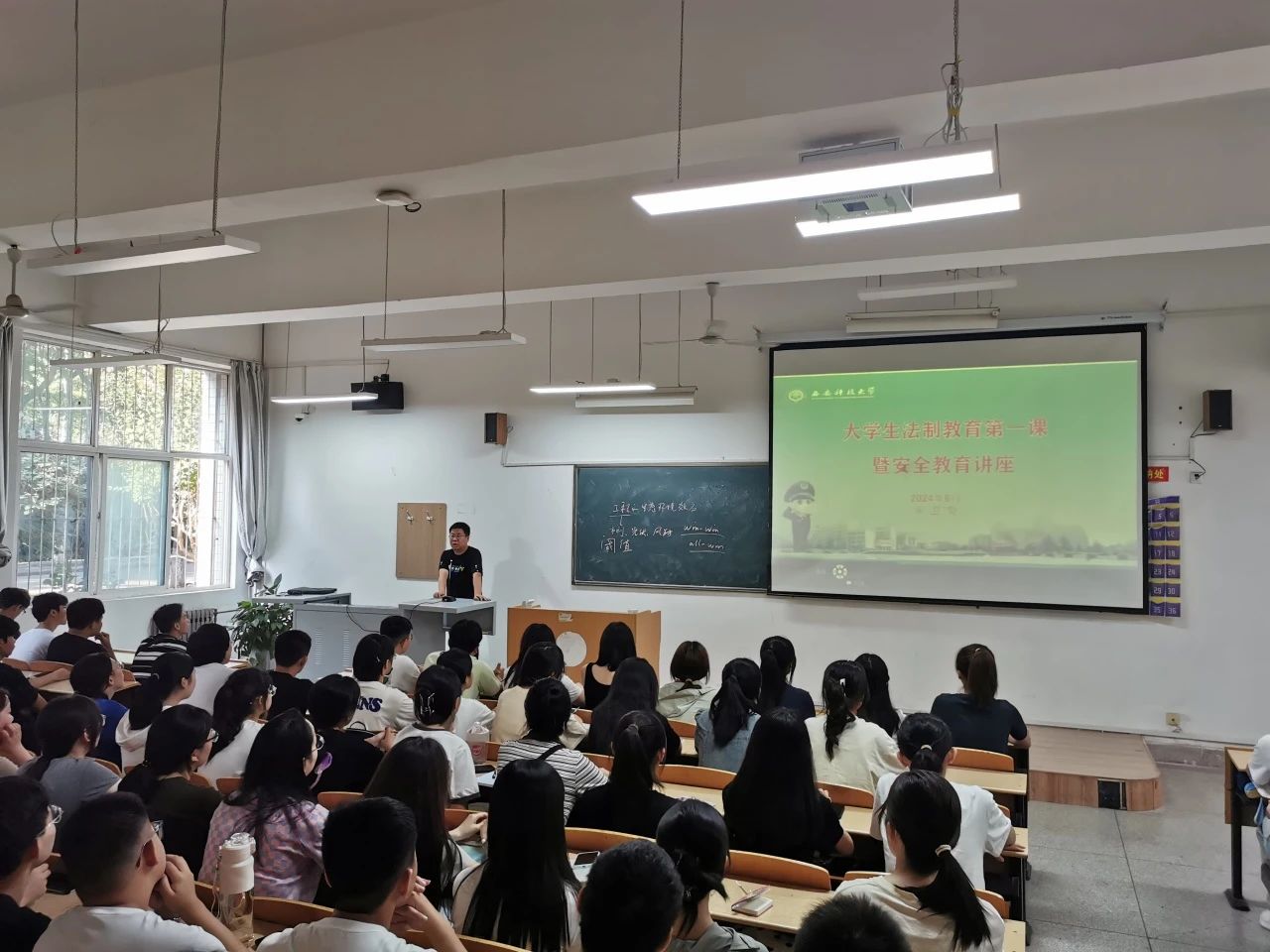 李楠以丰富的案例和深入浅出的讲解方式,为新生们详细阐述了法治精神的内涵、法律法规的基本常识以及校园安全的重要性。他通过讲解实际发生的案例,让新生们深刻认识到违法犯罪行为的严重后果,以及遵守法律法规、维护校园安全对于个人成长和社会稳定的重要意义。