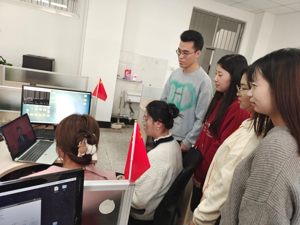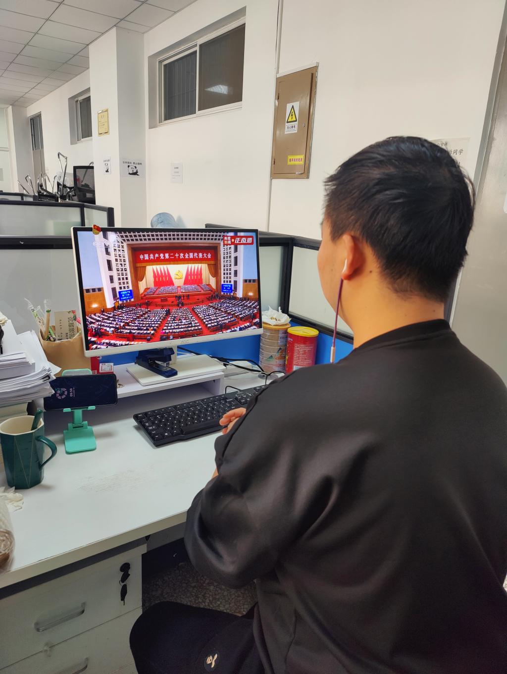10月16日,中国共产党第二十次全国代表大会在北京人民大会堂开幕。习近平代表第十九届中央委员会向大会作报告。理公司党委高度重视,组织了本科生党员、研究生党员、员工干部代表共计40人在临潼骊山校园实验楼208室、220室集中收看大会实况,公司党委书记孙颜红、学工办主任赵明与员工一同观看。公司各党支部分别组织师生员工或以腾讯会议集中收看,或在教室、员工宿舍、家中等地通过电视、网络、广播等多种方式分散收听收看,习近平总书记所作的党的二十大报告在师生中引起了强烈的反响。