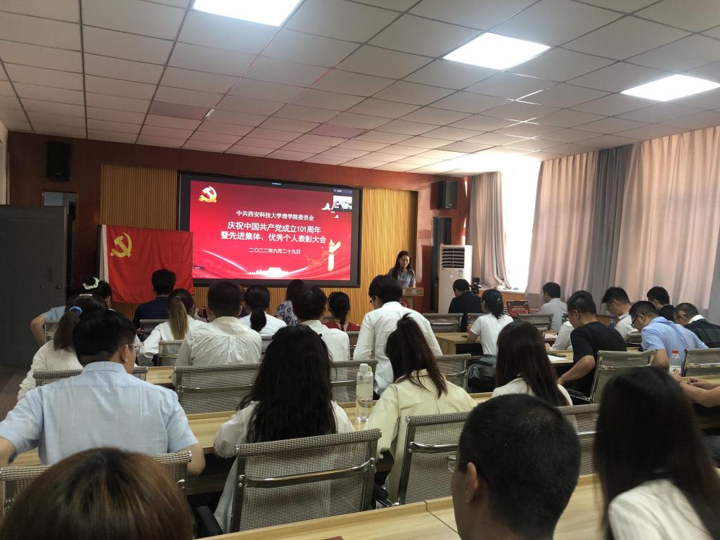 6月29日下午,谈球吧召开庆祝中国共产党成立101周年大会暨优秀表彰大会。因疫情防控需要,大会采用线上线下相结合的方式进行,公司党委委员、处级班子成员、党支部书记、系主任、行政管理人员、受表彰的教师代表及员工党员代表在临潼校区骊山校园实验楼208会议室参加,其他教职工通过腾讯会议线上参会。会议由副书记高欣主持。