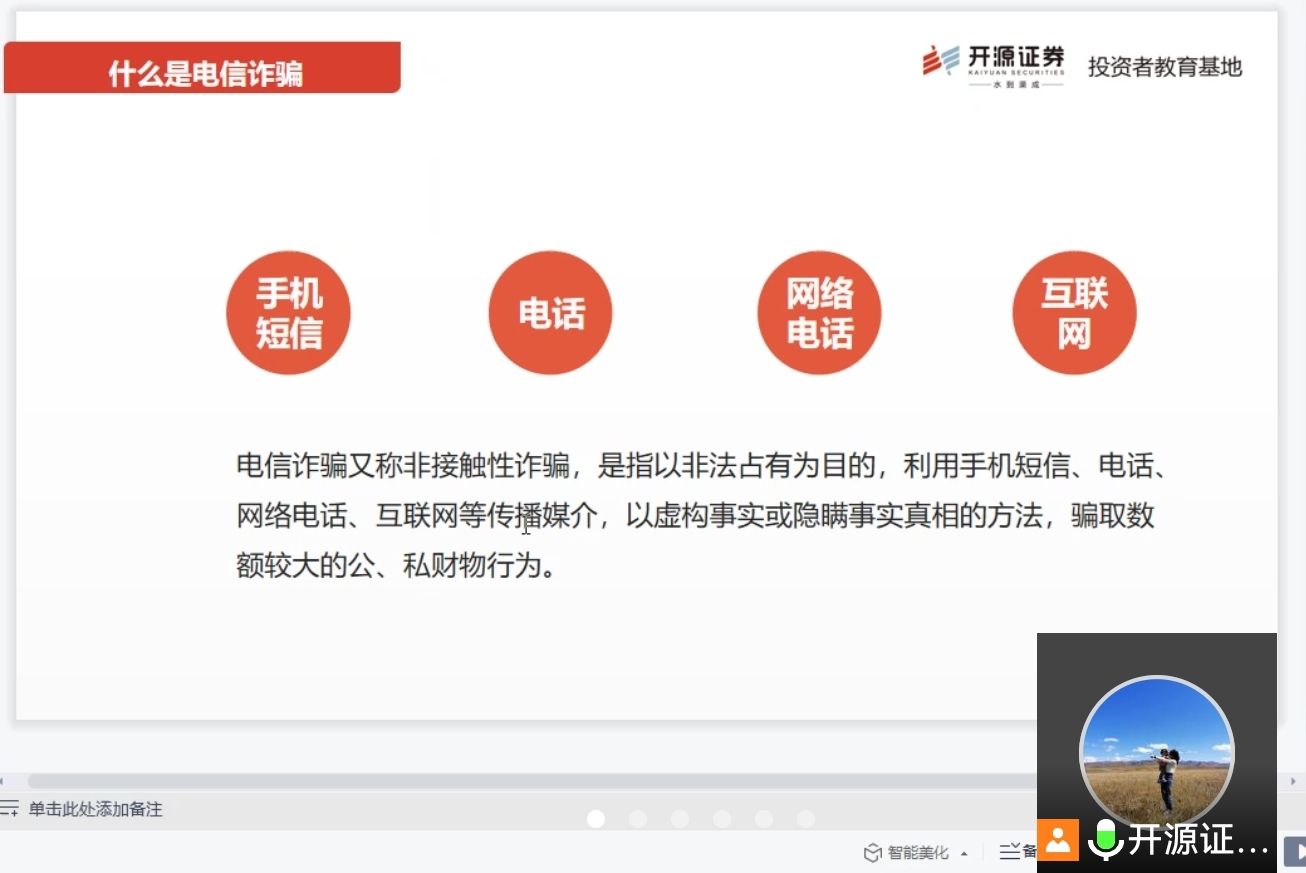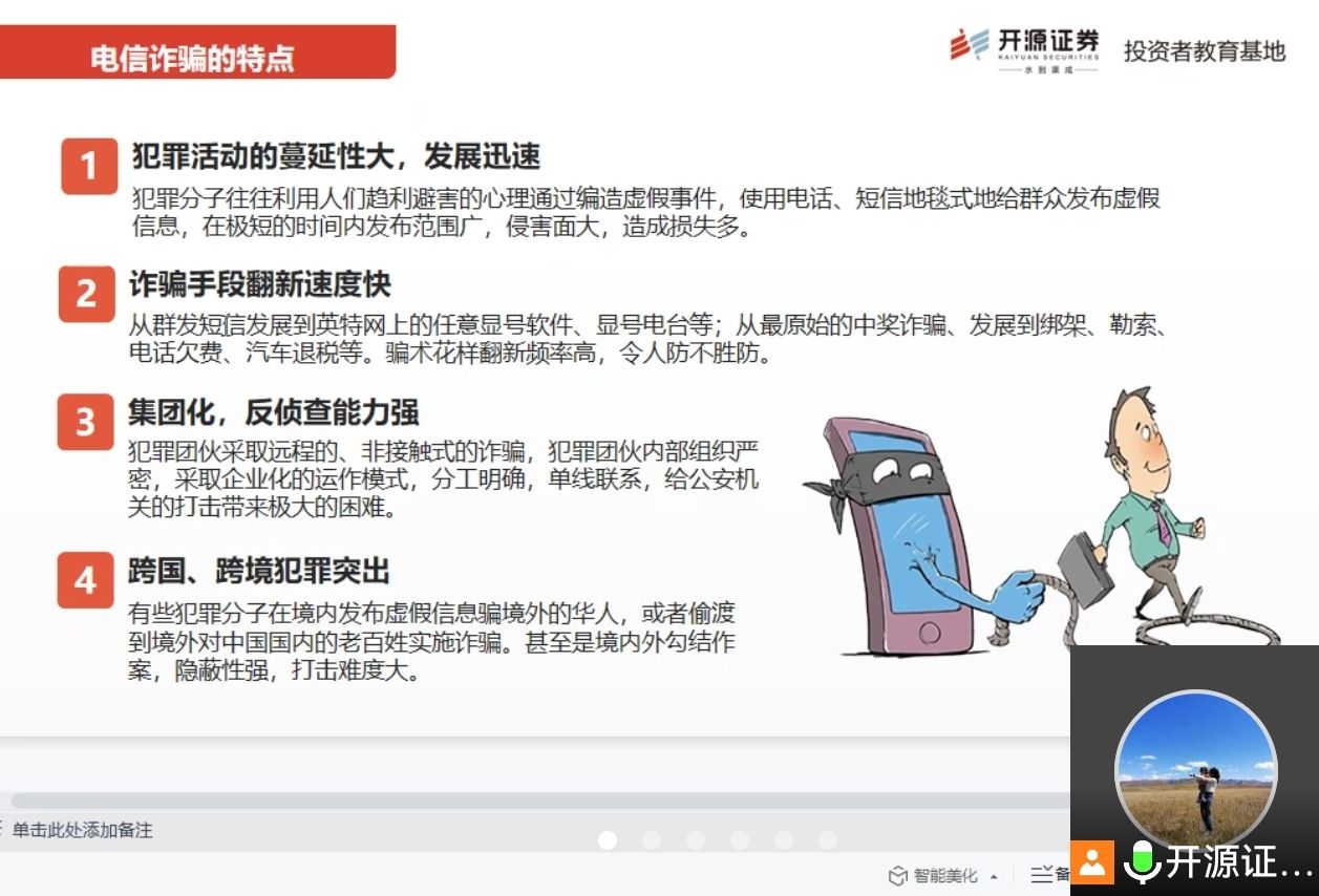 5月20日下午,谈球吧举办金融安全知识线上讲座,开源证券西安临潼华清路营业部合规风控专员兼投教联络人郑雅兰做了主题为“远离非法金融活动,传递正能量”的安全知识讲座,活动由谈球吧团委书记赵明主持,大一和研一全体同学参加了讲座。