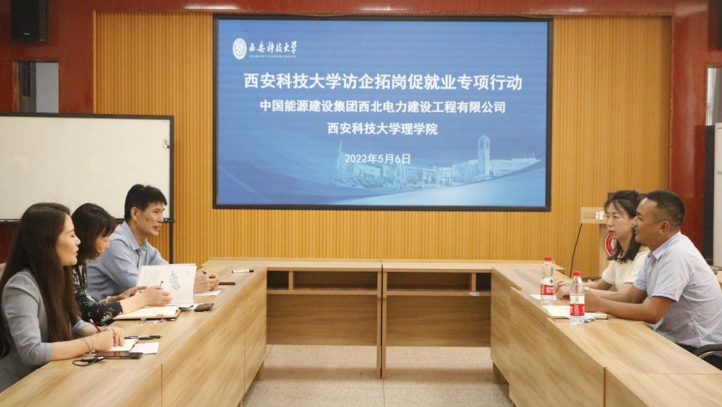 5月6日下午,应我谈球吧邀请,中国能源建设集团西北电力建设工程有限公司市场开发部主任杨帆一行来公司召开专场招聘宣讲会并就访企拓岗促就业专项行动在谈球吧208会议室召开座谈会议。