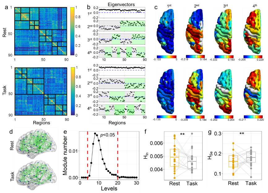 图1.任务状态下大脑功能组织等级隔离增加