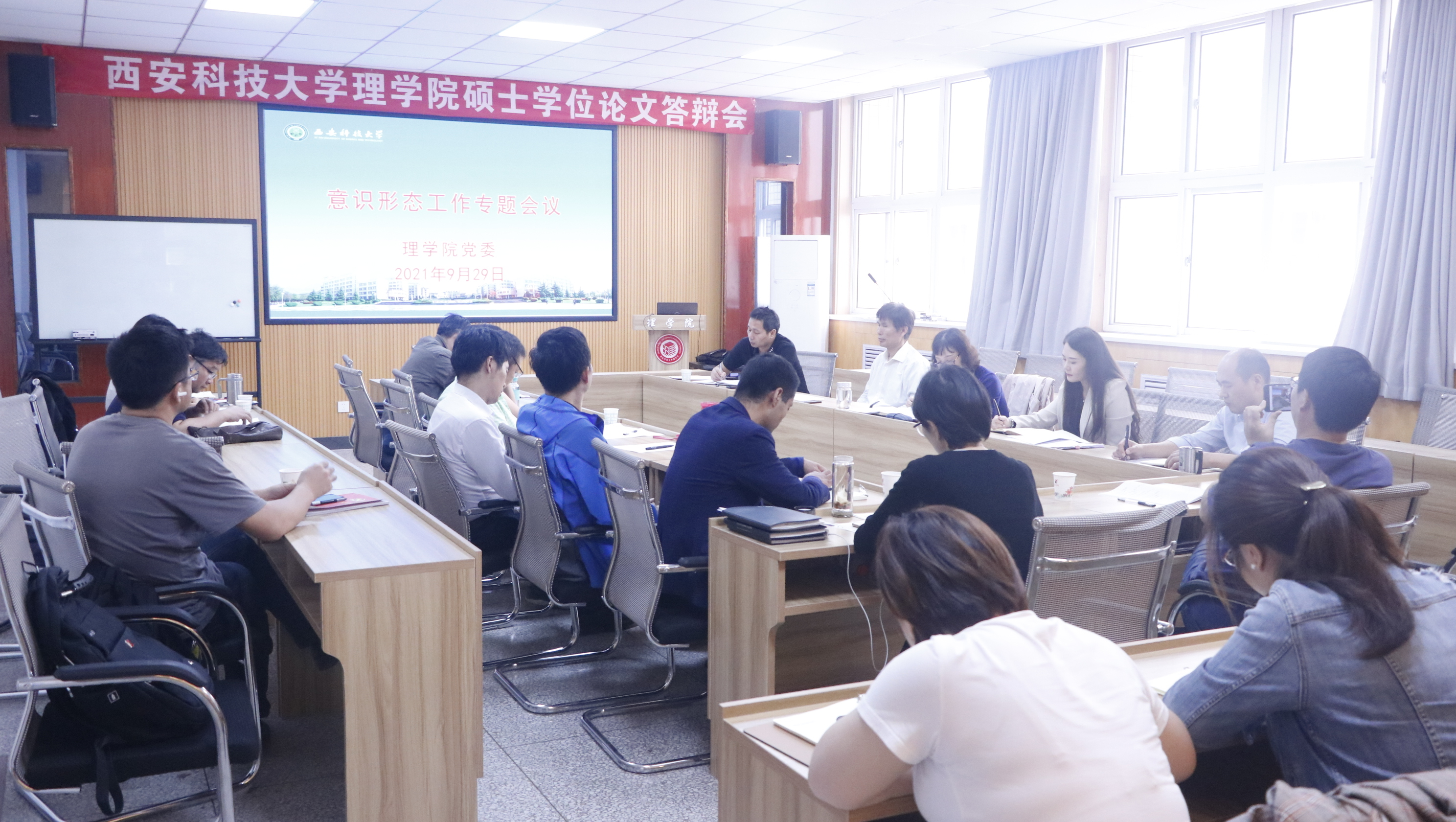 9月29日下午,谈球吧在临潼校区骊山校园召开党委扩大会,专题研究全面从严治党、意识形态工作。公司班子成员、党委委员、党支部书记、系主任、实验中心主任、全体辅导员和行政人员共计21人参加会议。会议由党委书记孙颜红主持。