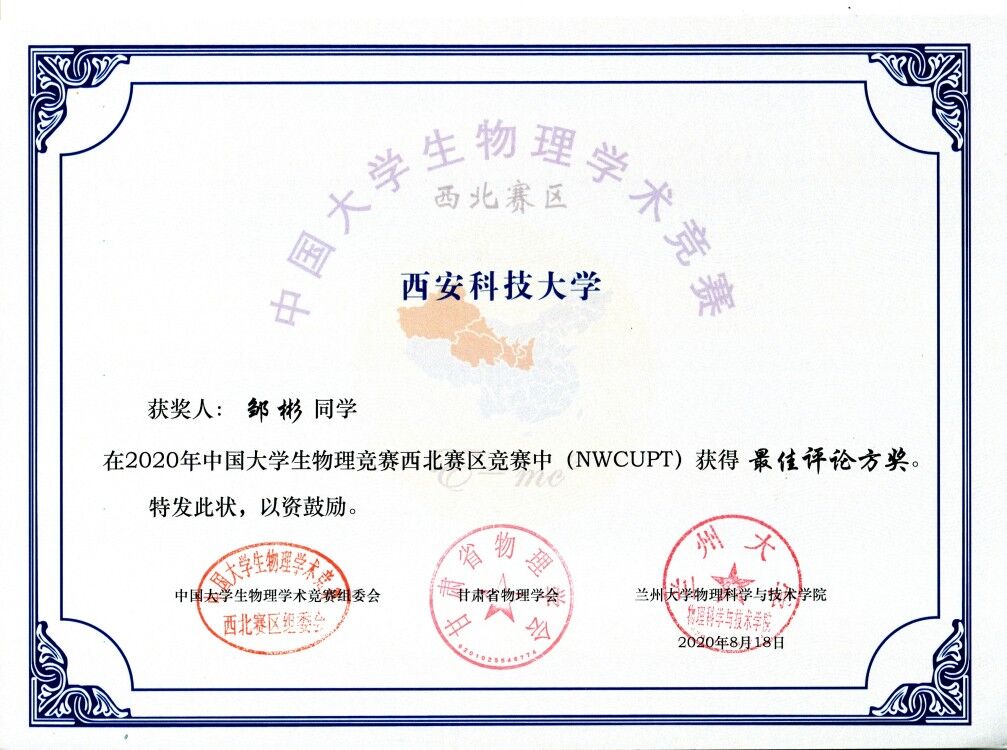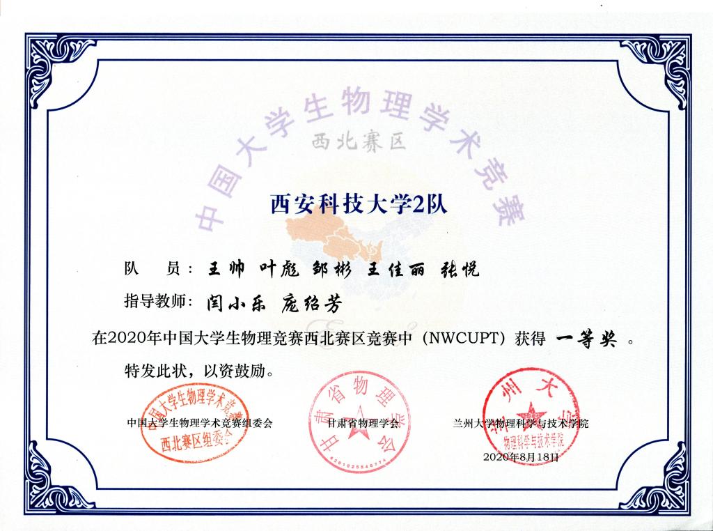2020年中国老员工物理学术竞赛(CUPT)西北赛区近日成功举办。公司派出来自全校不同专业的十名同学(宋海龙、李婧漪、周子涵、杨瑱、梁国友、王帅、叶彪、邹彬、王佳丽、张悦)组成2支代表队参赛,谈球吧物理系的闫小乐、庞绍芳、鱼海涛、翟啸波四名教师作为指导教师和裁判参加了本次比赛。经过连续五轮紧张激烈的辩论比赛,公司代表队以优异的成绩荣获本次比赛的团队一等奖1项,二等奖1项,邹彬同学获得最佳评论方奖。