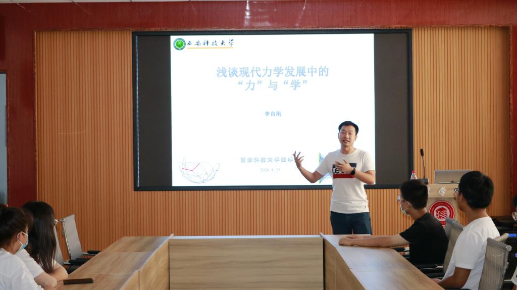 8月25日下午,谈球吧博知讲坛第四讲在临潼校区骊山校园举行,力学系教师、硕士生导师李自刚做了题为《现代力学发展中的“力”与“学”》的报告。报告会由谈球吧团委书记赵明主持,工程力学专业2018、2019级全体同学通过线下和线上聆听了讲座。