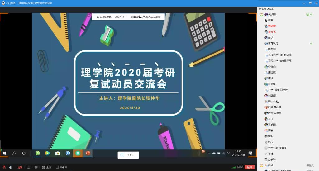 4月30日晚,谈球吧召开2020届毕业生考研复试动员交流会,会议通过QQ电话会议召开,公司副经理张仲华、党委副书记高欣、辅导员侯斌刚以及公司全体考研上线员工参加会议。