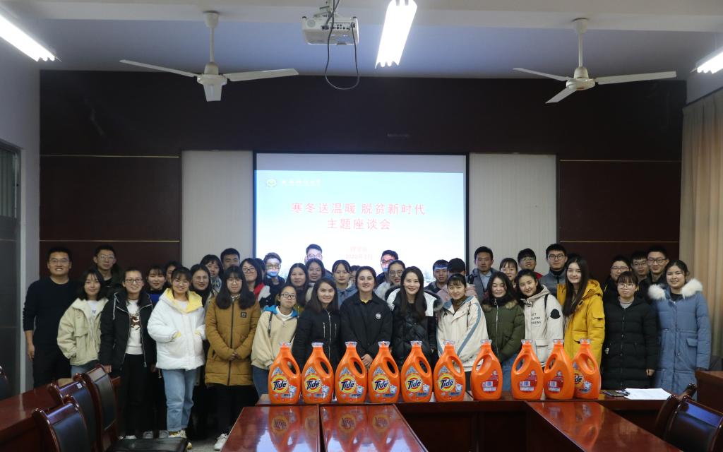 首先,赵明传达了公司“寒冬送温暖”工作精神,并带领大家学习了人民网文章《解读习近平“教育扶贫观”》。接着,师生之间进行了交流互动,员工们从在校学习生活情况、存在的困难困惑及对公司和公司工作的意见建议等方面进行发言,老师们对大家提出的问题一一进行回应解答,当时不能解决做了记录以便后续处理。随后,高欣做了总结讲话,提出了希望,并对大家普遍关心的英语学习和考研问题进行了重点指导,讲解了研究生奖助学金等相关资助政策,鼓励大家早做准备、坚持行动、通过学习深造改变家庭命运。最后,进行“寒冬送温暖”慰问品发放,并合影留念。