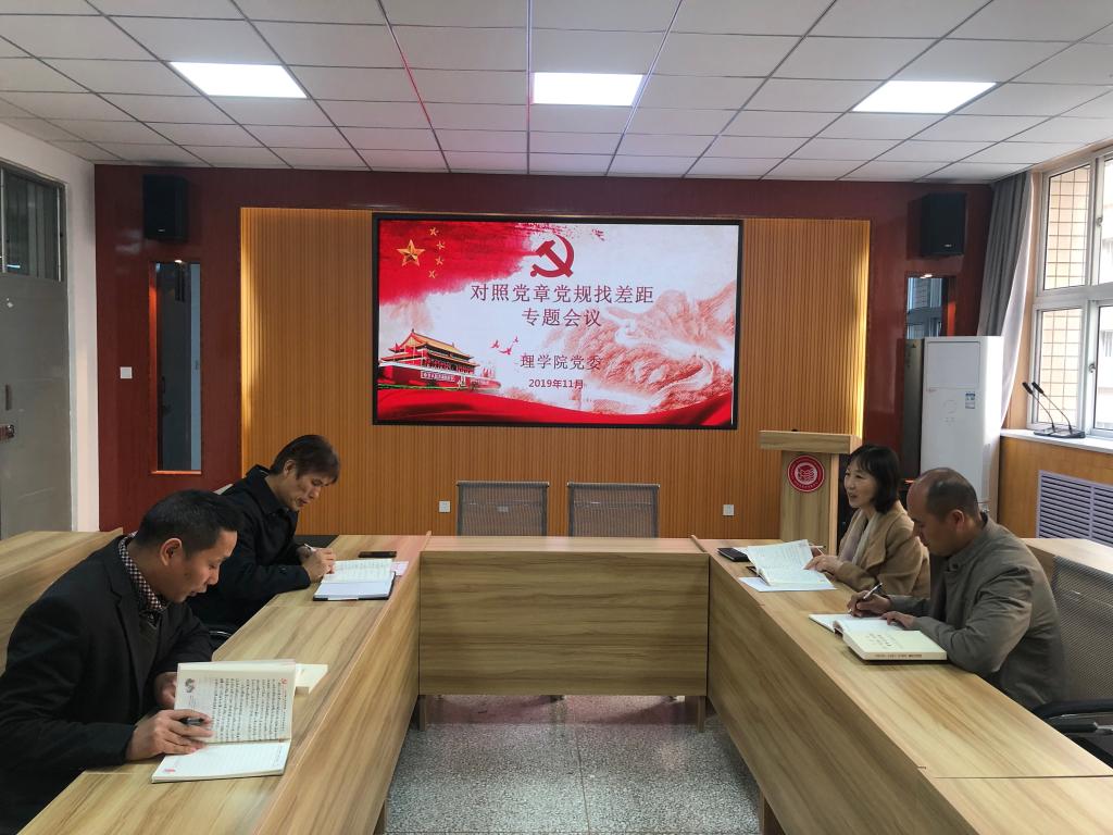11月12日下午,谈球吧班子成员在临潼校区实验楼221室,召开“对照党章党规找差距”专题会议。首先进行了《中国共产党章程》《关于新形势下党内政治生活的若干准则》《中国共产党纪律处分条例》等相关内容集中学习,而后孙颜红、李明、张仲华、解忧结合自身思想、工作、生活和作风实际,紧紧围绕“18个是否”,逐一检视,对标准、找差距、剖原由、找方案。