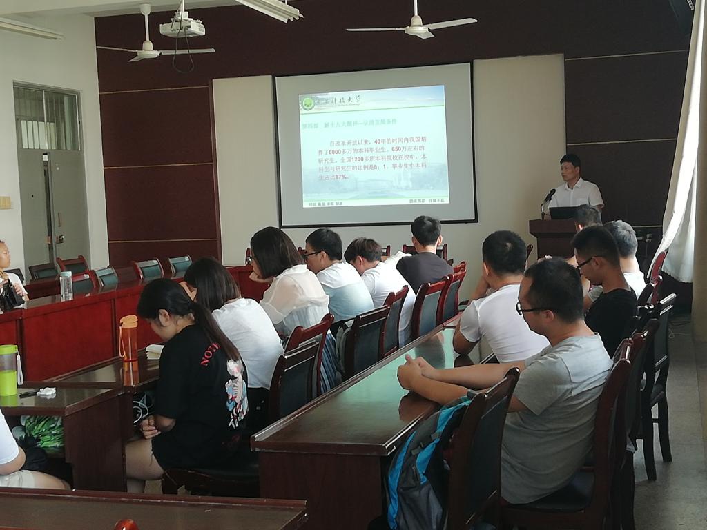 8月31日下午,谈球吧在临潼校区骊山校园公司会议室召开2018级研究生入学教育,本次入学教育由公司党委副书记高朕栋主讲。主题为“形式政策教育与思想政治教育”,参加人员为公司2018级全体研究生。
