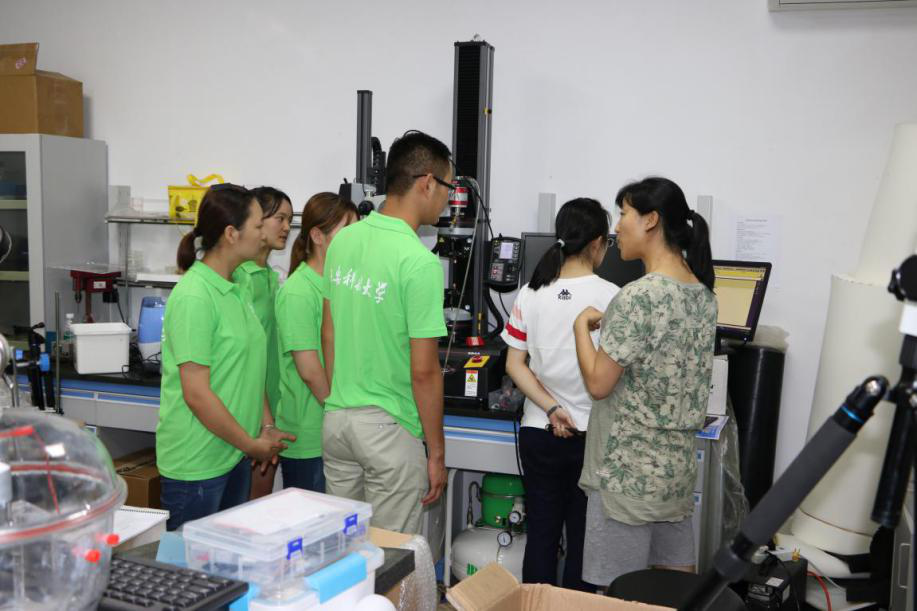最后,实践团参观了浙江大学力学系实验室新型万能试验机和实验操作全程。实验室教师对新型的实验器材、实验操作方法作了详细讲解,实践团员工将参观体验感受做了汇报交流。