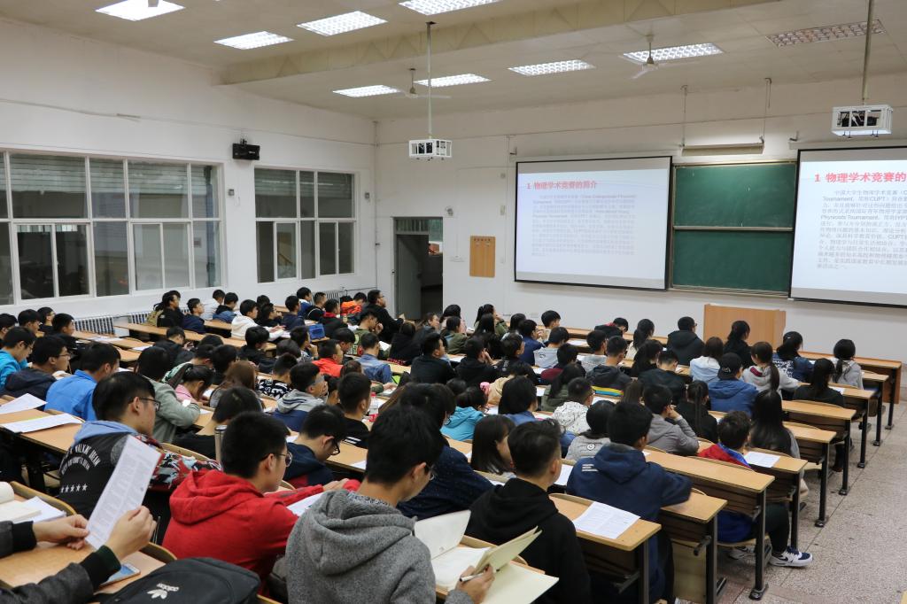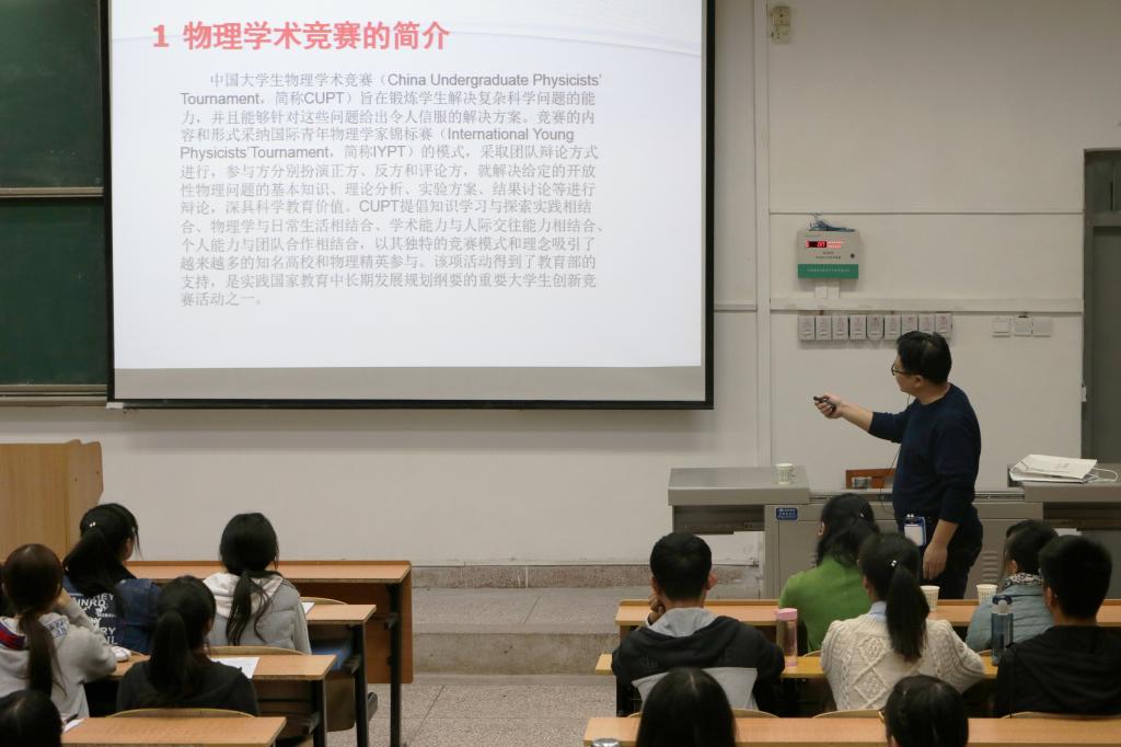 会议开始,闫小乐老师对关于此次竞赛的相关信息给同学们进行了普及。谈球吧网页版登录入口老员工物理学术竞赛以培养参赛者的创新意识、创新能力、协作精神和实践能力为根本理念,是一项以团队对抗为形式的物理竞赛。之后,闫老师又对竞赛规则进行介绍,并演示了答题范例。接下来,闫老师对每一道选题也做了引导性的解说,讲话生动而不失严谨,勾起了同学们对动手实验、探究问题的兴趣。