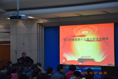 邀请公司马克思主义公司李禾俊老师作了报告。期间,李老师从十八届六中全会的重大意义、坚定不移的推进全面从严治党、全面加强和规范党内政治生活、全面落实党内监督责任等四个方面生动详细的为大家讲解了十八届六中全会的精神内涵。出席会议的各位教师积极响应,认真学习会议精神。