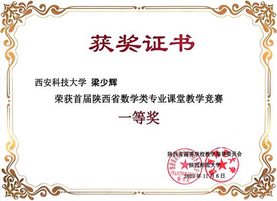 11月18日由陕西省高等公司教学指导委员会数理类工作委员会主办,西安电子科技大学数学与统计公司承办的第三届陕西省高等公司数学类专业建设研讨会隆重召开。来自全省30多所高校的陕西省高等公司教学指导委员、各高校数学类专业负责人和教师120余名代表参加了会议。谈球吧经理张仲华教授带领公司数学系青年教师参加了会议。期间进行了首届陕西省高校数学专业课堂教学竞赛颁奖仪式,谈球吧数学系教师梁少辉荣获一等奖。