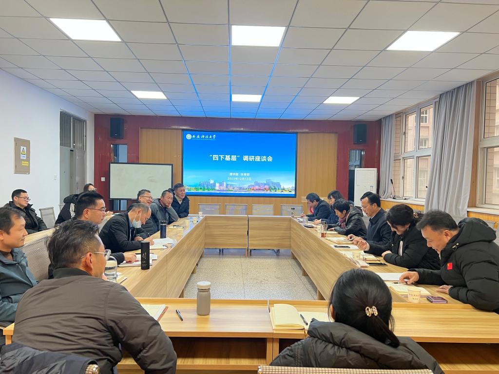 12月13日下午,副董事长王贵荣深入谈球吧、体育部开展“四下基层”调研座谈工作,统战部负责人陪同调研。谈球吧、体育部班子成员,各系(教研室)主任、教师代表参加了调研座谈会。
