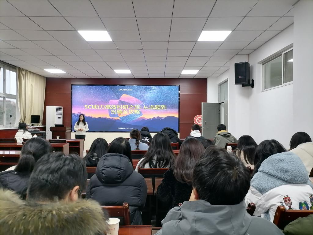 报告会上,彭力舒老师结合科睿唯安数据库相关大数据特征,以《SCI高效科研之旅——从选题到写作投稿全攻略》为主题,面向全体研究生,分享了科技论文写作相关经验及方法。讲座围绕以下四方面展开:科学研究前沿和热点方向的追踪,文献调研、文献综述、课题发展脉络的梳理,高影响力的学者、机构、权威期刊的关注,科技论文写作的效率提升。