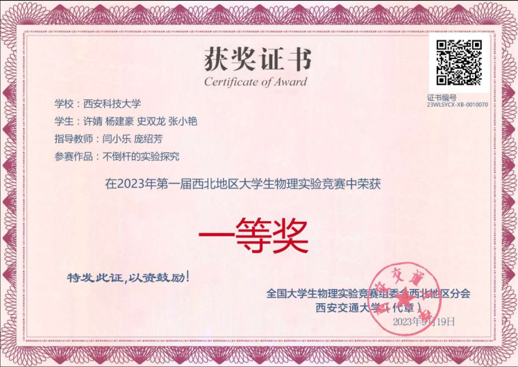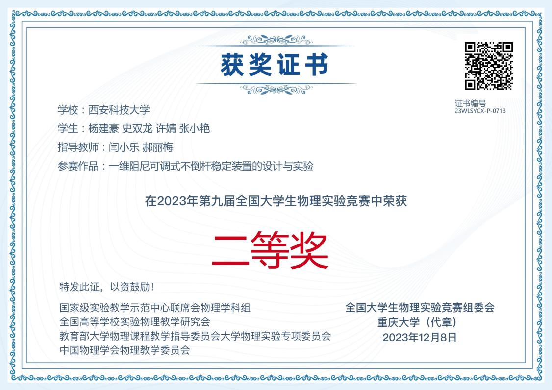 2023年11月26日,第九届全国老员工物理实验竞赛(创新)全国决赛在重庆大学落下帷幕。公司学子在比赛中取得佳绩,共获得国家级二等奖2项,省级一等奖2项、二等奖1项,三等奖2项,优秀组织奖1项,成绩优异。