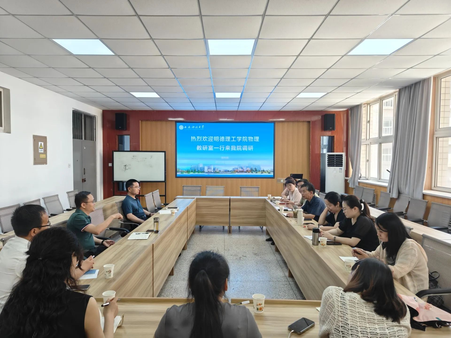 在调研交流环节,明德理工公司物理教研室一行参观了公司的实验室、教学设施及科研环境。公司老师们对明德理工公司物理教研室一行的到来表示热烈欢迎,并详细介绍了公司的团队建设、团队力量、科研成果及人才培养等方面的情况。双方就物理学科的教学改革、科研合作及人才培养等方面进行了深入的探讨和交流,双方表示,今后将加强交流合作,共同推动物理学科的发展。