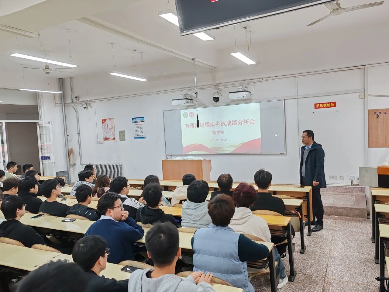 为深入推进学风建设,帮助同学们进一步提高英语四级学习效率,谈球吧于11月7日在3教313召开了2023级本科生英语四级模拟考试成绩分析会,本次分析会由2023级辅导员侯斌刚主持,2023级全体员工参加。