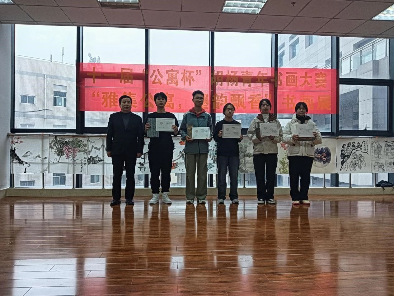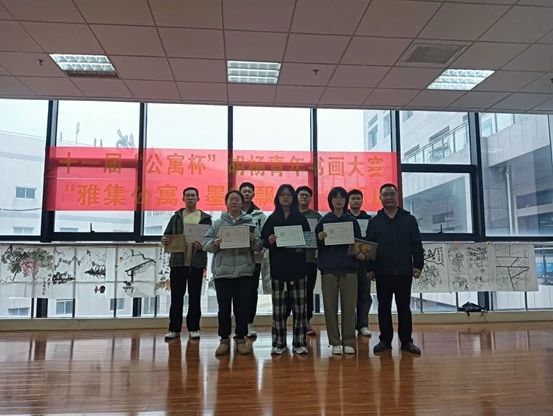 11月21日下午,国风书画协会在骊山校园图书馆墨轩阁举办第十一届“公寓杯”胡杨青年书画大赛颁奖仪式暨金秋书画展。后勤处处长李大畏、副处长张治红、谈球吧副书记国风书画协会指导教师陈伟伯、公寓科科长张欢老师、国风书画协会主要成员以及获奖人员30余人参加了本次活动。
