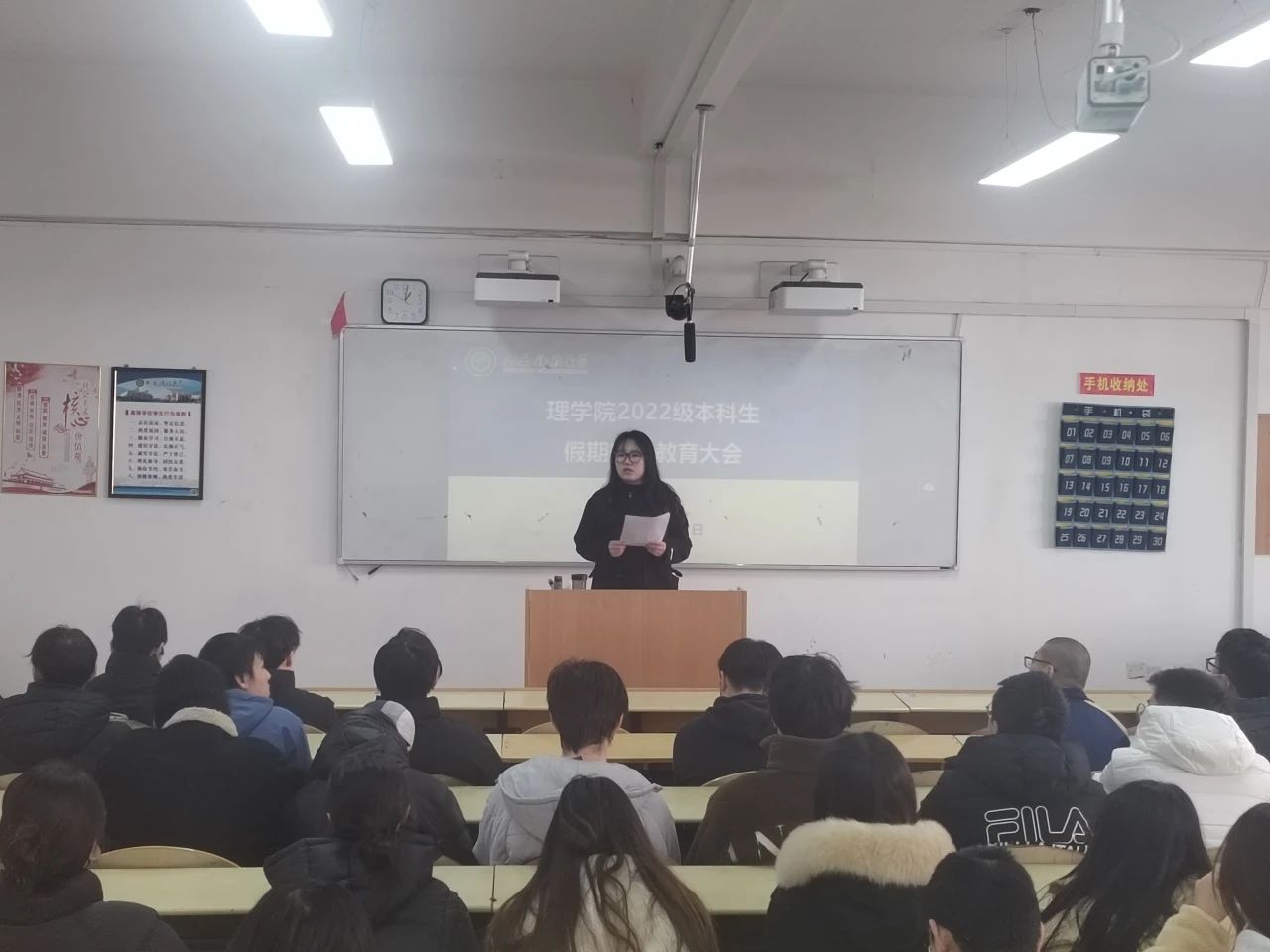 1月7日,谈球吧于3教212室召开了2022级本科生假期安全教育大会。此次大会由2022级本科生辅导员薛一丹老师主持,公司党委副书记陈伟伯以及2022级全体本科生参加。