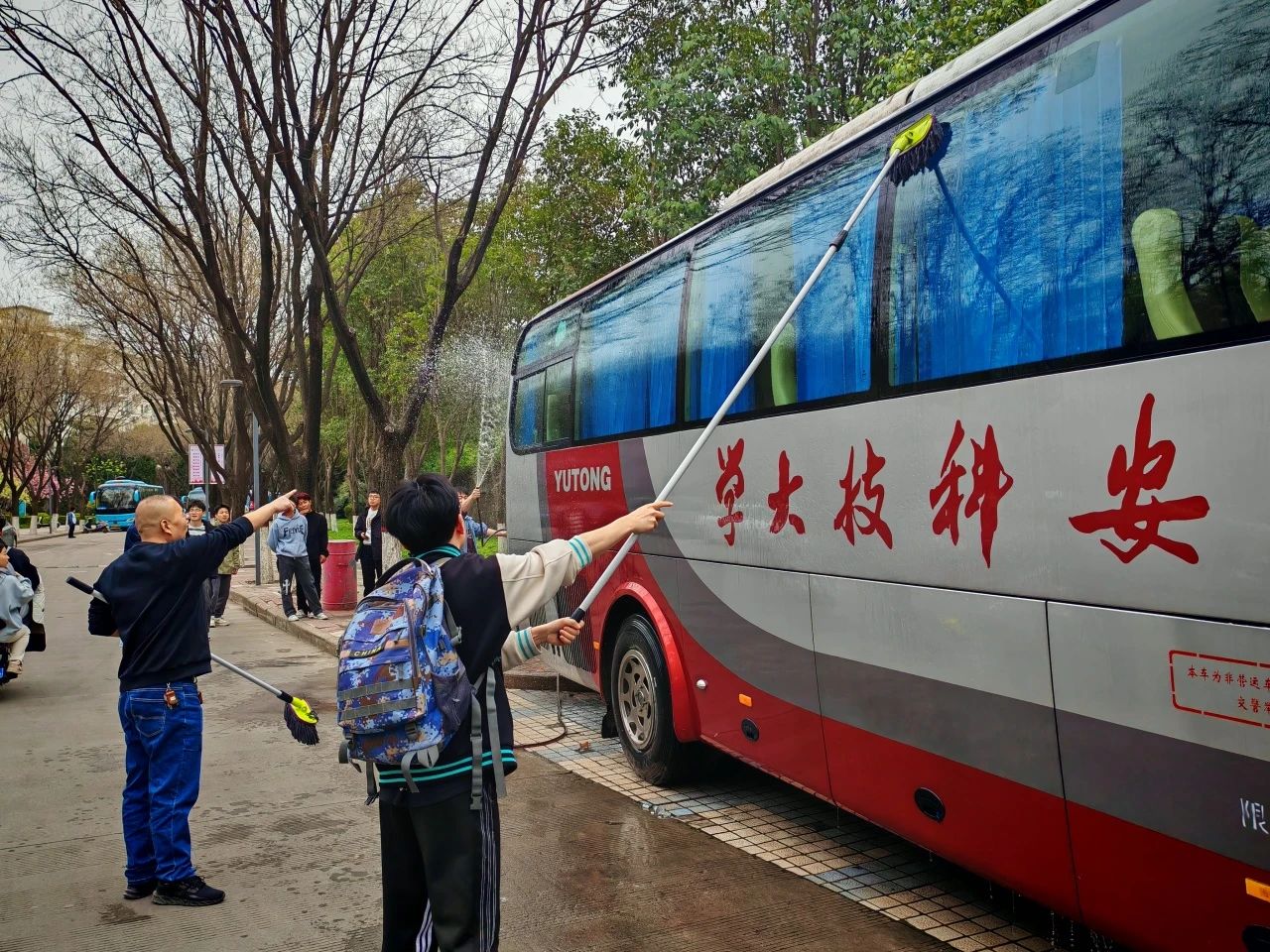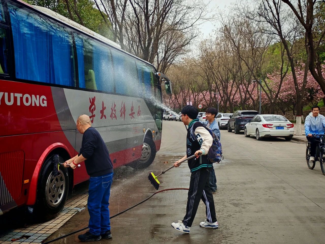 为积极响应学习雷锋精神的号召,传承和弘扬新时代雷锋精神,4月2日,谈球吧组织了清洗校车志愿服务活动。