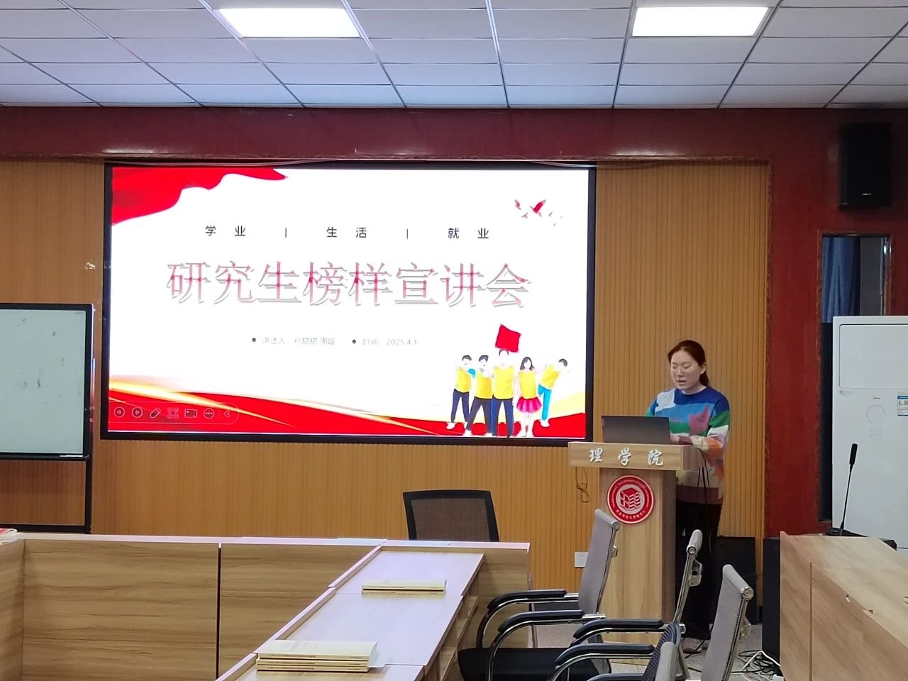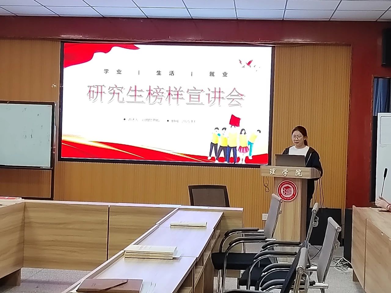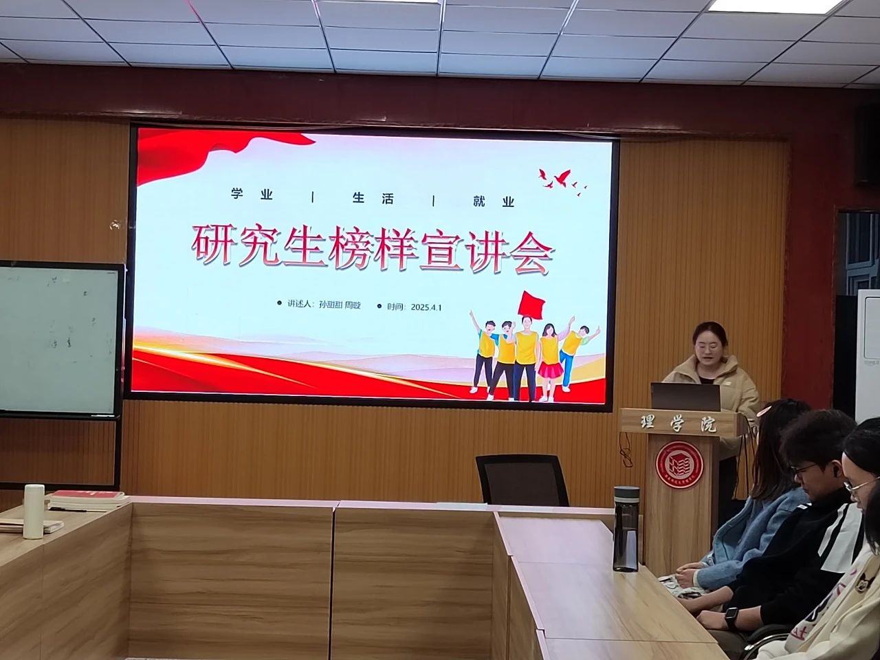 4月1日晚上7点,谈球吧于208会议室举办了研究生榜样宣讲活动,活动邀请两位优秀研究生代表孙甜甜、周璇担任主讲人。