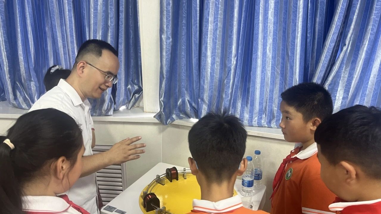 在物理实验室,孩子们迎来了充满乐趣的动手环节。高峰老师精心准备了多个趣味物理实验,将抽象的物理原理转化为可视、可触、可感的奇妙现象。孩子们热情高涨,积极参与实验操作,近距离感受物理学的魅力。高老师耐心解答着孩子们提出的各种“为什么”,在互动中加深了他们对科学知识的理解。