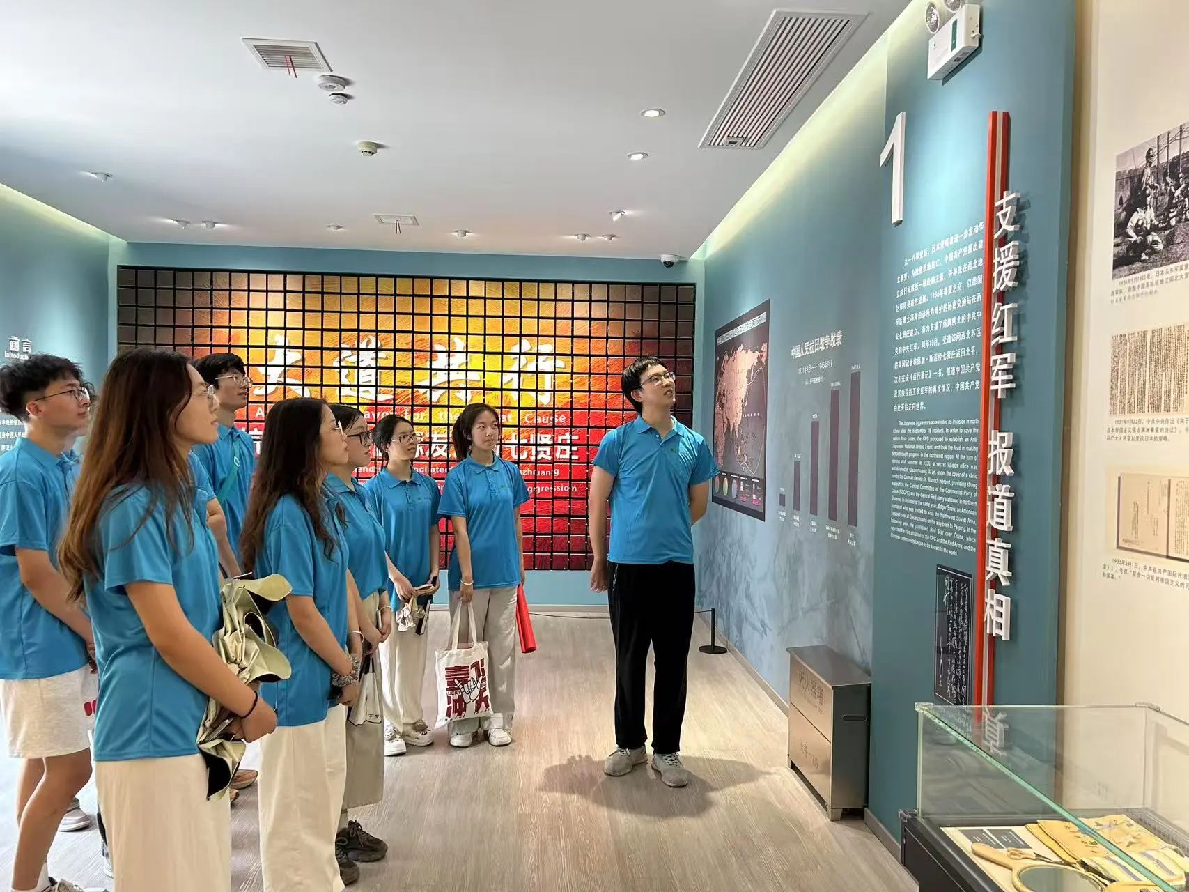 活动中,同学们依次参观了旧址内的办公室、会议室、宿舍、厨房等复原场景,仔细聆听了关于周恩来、朱德、刘少奇等老一辈无产阶级革命家在此工作和生活的感人故事。泛黄的文件、锈迹斑斑的武器、简陋的生活用品,每一件文物都承载着厚重的历史记忆,生动展现了革命先辈们在艰苦环境中坚守信仰、无私奉献的崇高精神。同学们不时驻足凝视这些珍贵文物,彼此轻声交流感悟。 大家沉浸在对革命历史的追思中,深切领悟到先辈们为国家独立、民族解放所付出的巨大牺牲与不懈努力。