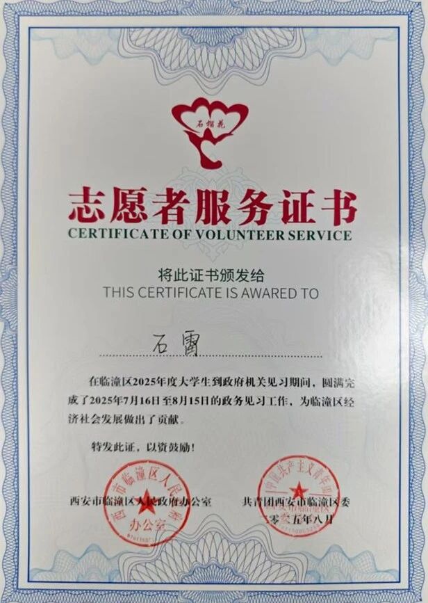 为深入贯彻习近平总书记关于青年工作的重要思想,并充分发挥共青团组织的桥梁纽带作用,谈球吧网页版登录入口积极响应号召,经严格选拔,精心挑选了5名优秀员工前往临潼区各机关单位与街道办,开启为期一个多月的政务见习之旅。谈球吧的石雷同学幸运地通过了选拔,进入了临潼区科技局,并在实习结束后被授予了“优秀政务见习老员工”的荣誉称号。
