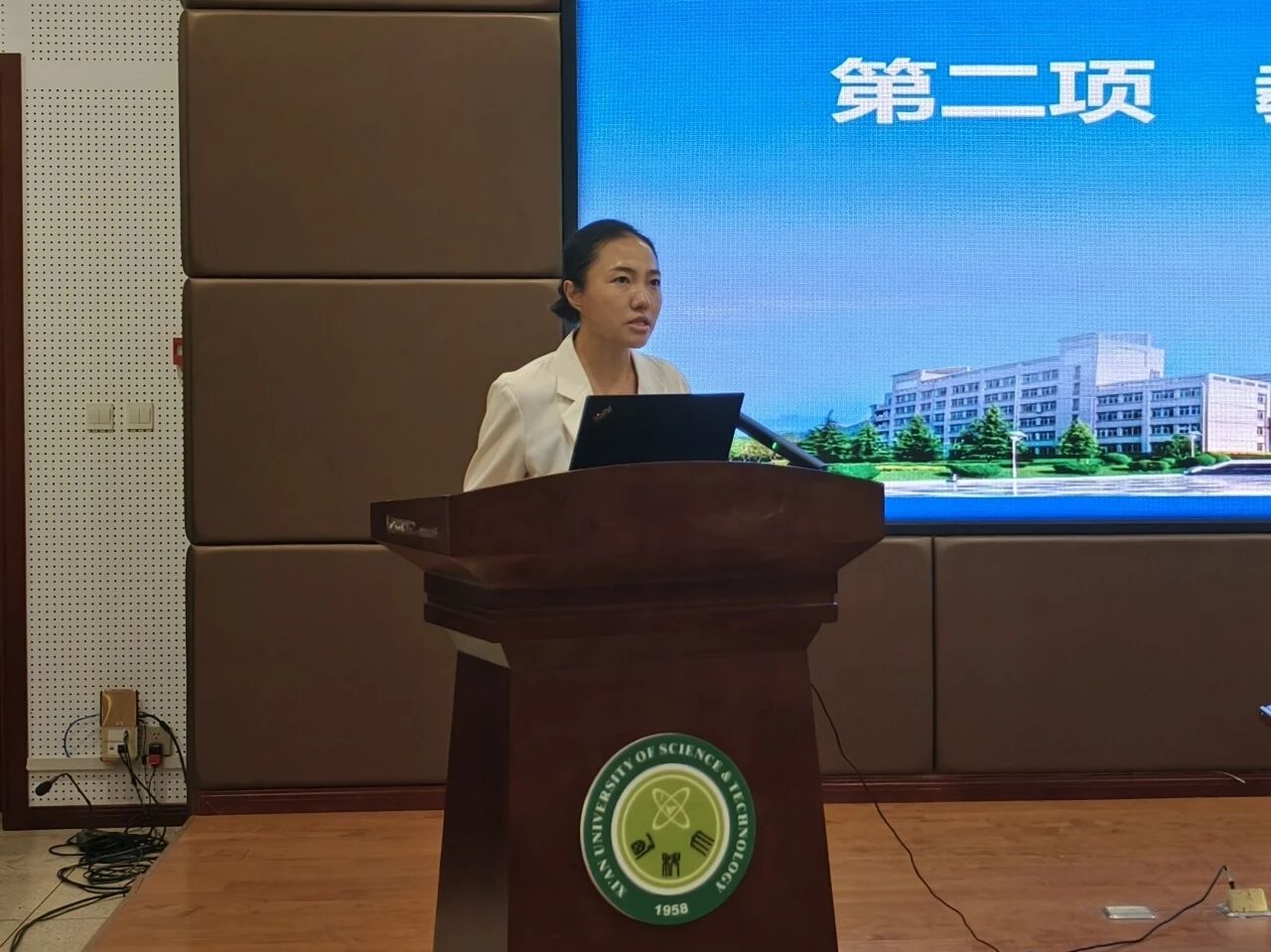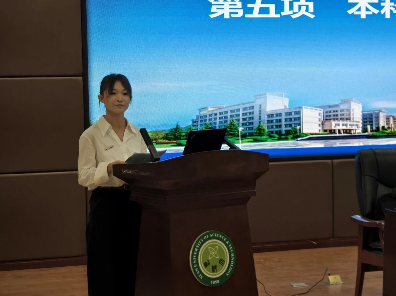 本科生新生代表秦一菡发言。她讲述了自己对老员工活的向往,并表示将以积极的态度面对新环境、新挑战,努力学习专业知识,培养良好的学习习惯和生活习惯,尽快融入谈球吧这个大家庭,在大学四年里实现自我价值。
