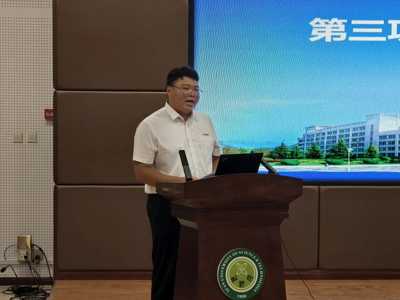 研究生新生代表高子晨发言。他提到,研究生阶段将面临更多的挑战,需要具备独立思考和解决问题的能力。他表示,将以饱满的热情投入到科研工作中,在导师的指导下,努力探索学术前沿,为公司的科研事业贡献自己的力量。